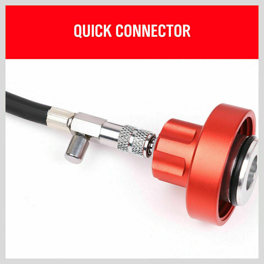 Long hose aids easy use of the gauge and quick release is fitted with pressure release valve for safe operation