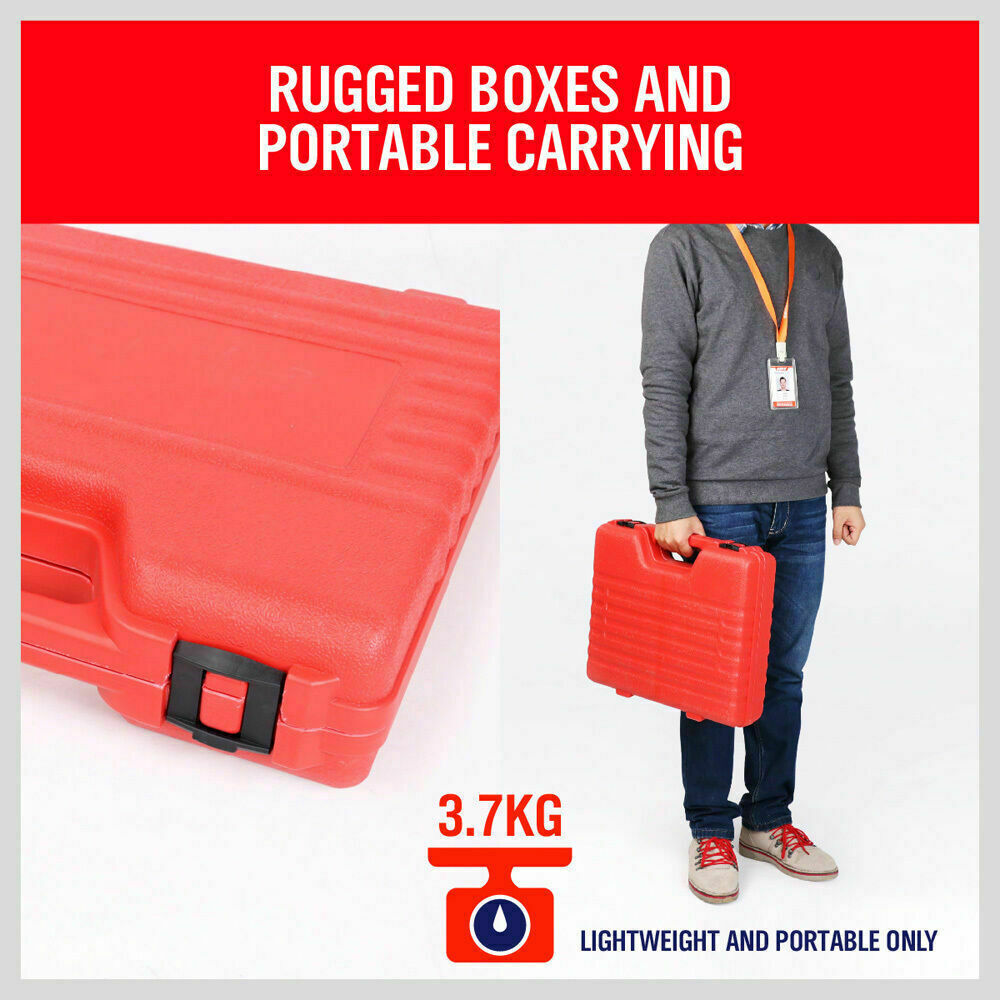 Heavy-duty pressure test kit is suitable for wide range of vehicle applications and for locating leaks in vehicle cooling system. Heavy-duty pump unit features smooth action and easy-to-read scale. Ideal instrument for testing for leaks; head gasket, radiator, heater core and header tank.