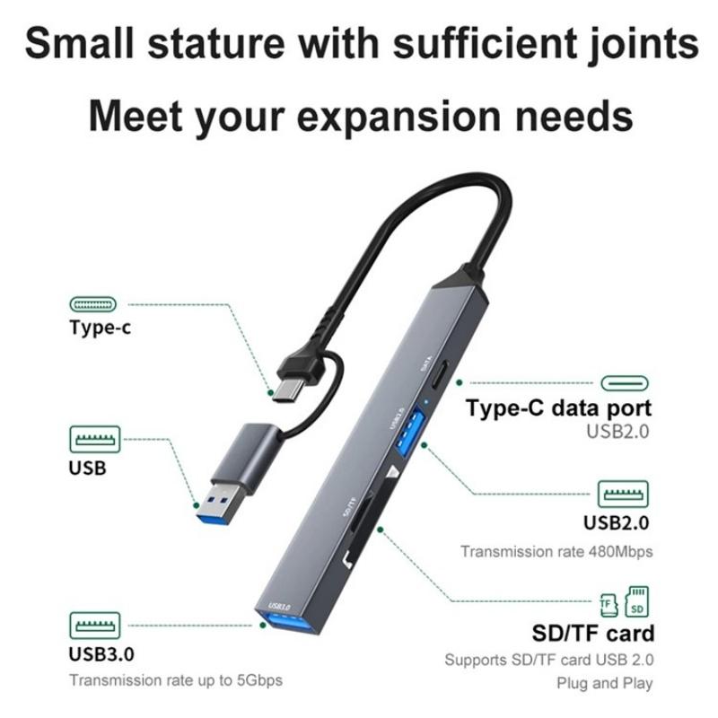 • Functions: Usb+Type-C Expansion, Type-C Data Transfer x 1, Usb 2.0 x 1, Usb 3.0 x 1, Sd Card Slot x 1, Tf Card Slot x 1 (