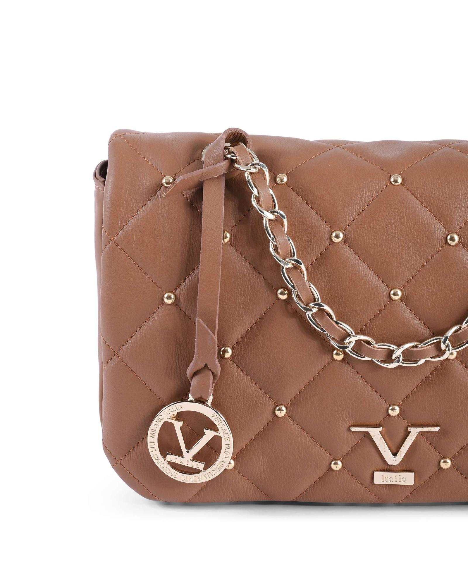 V Italia Brown Quilted Leather Shoulder Bag with Chain Strap – One Size