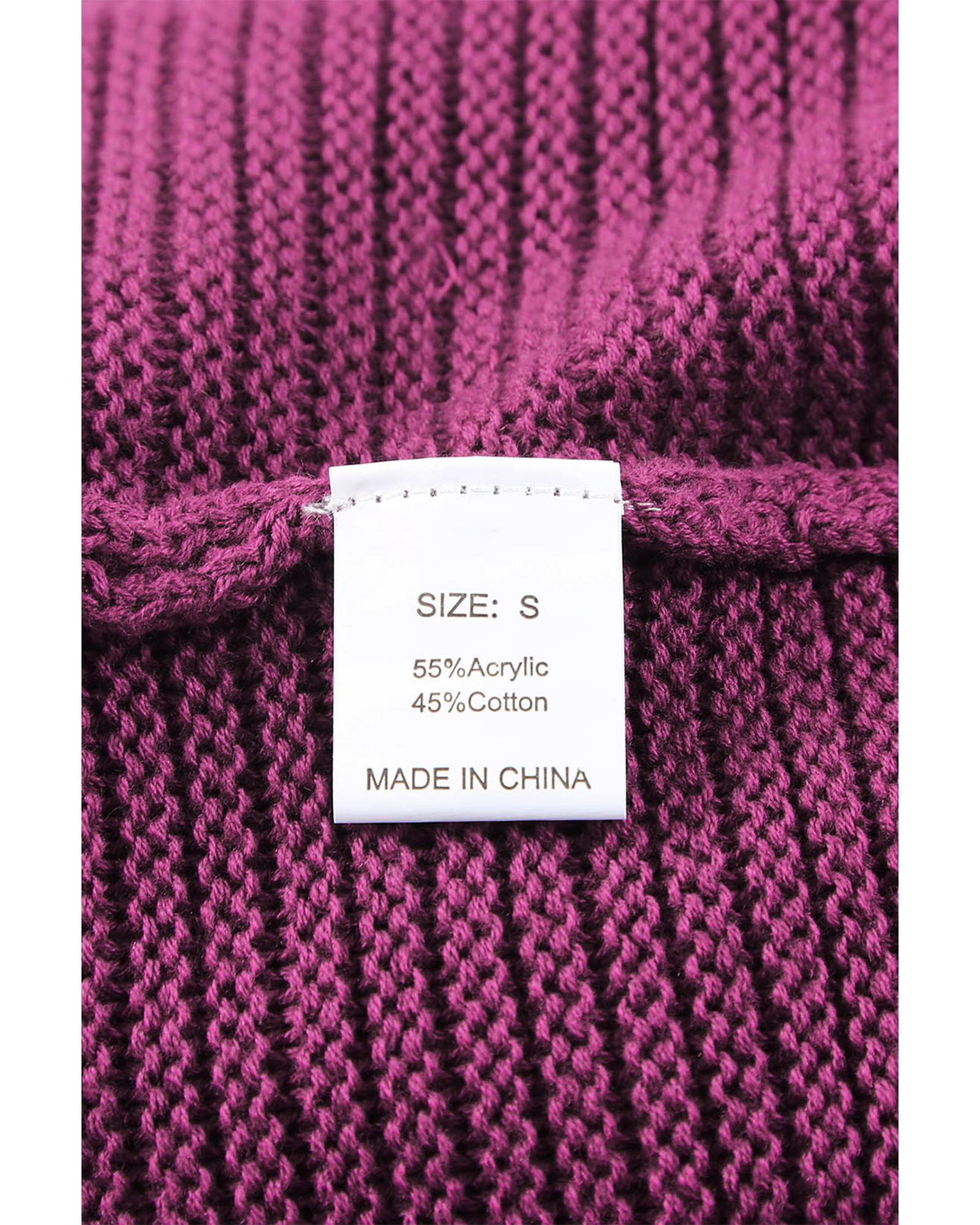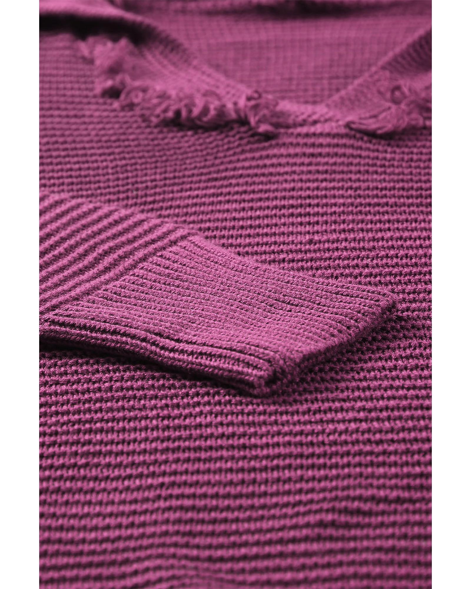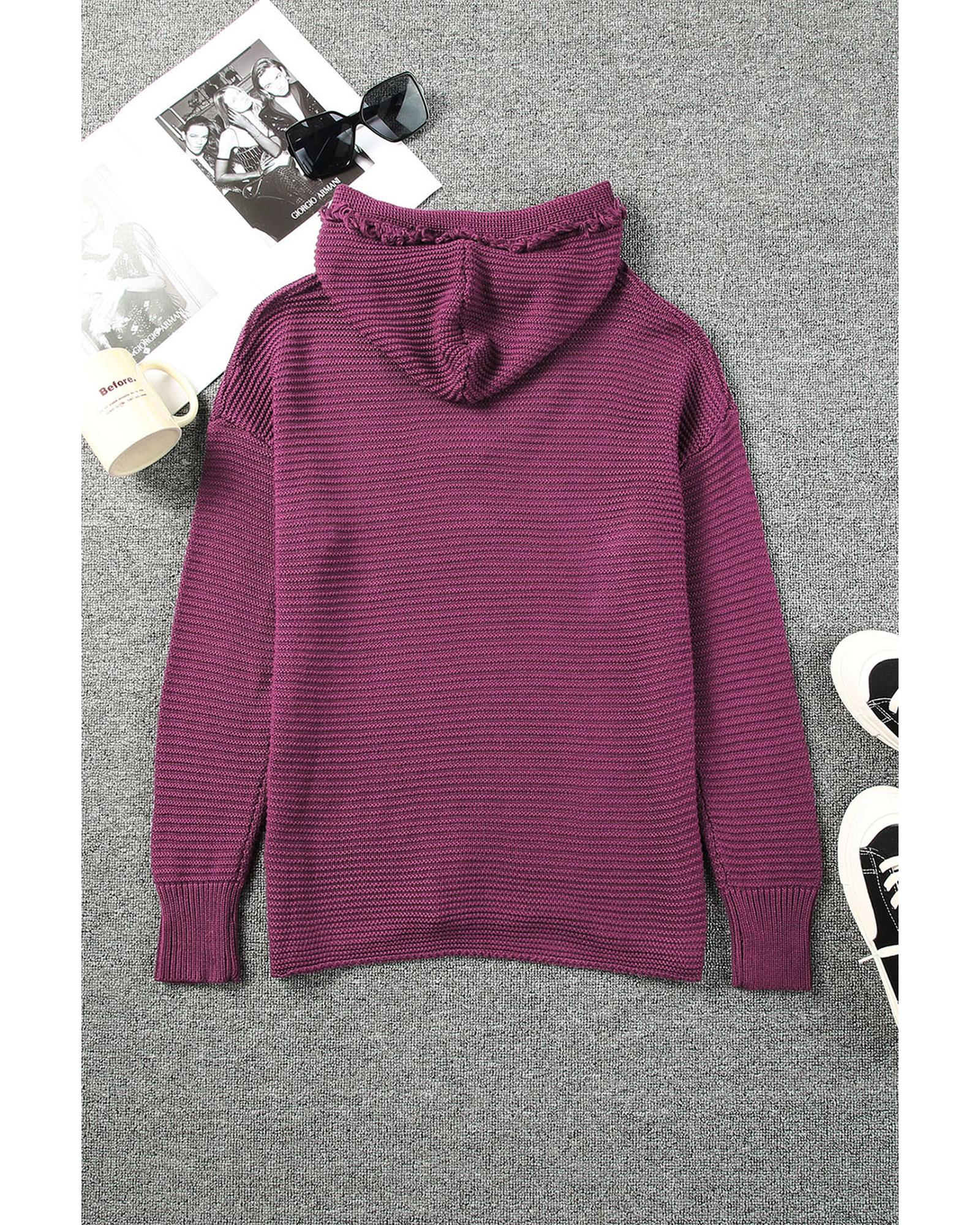 V Neck Ribbed Drop Shoulder Hooded Sweater – S