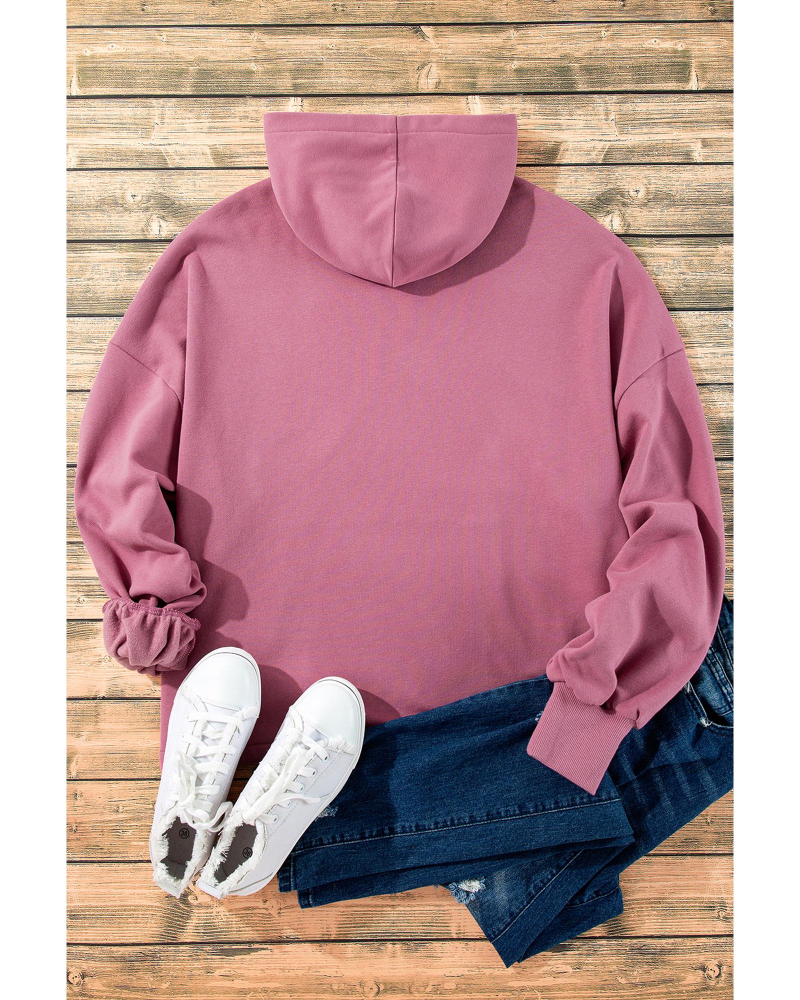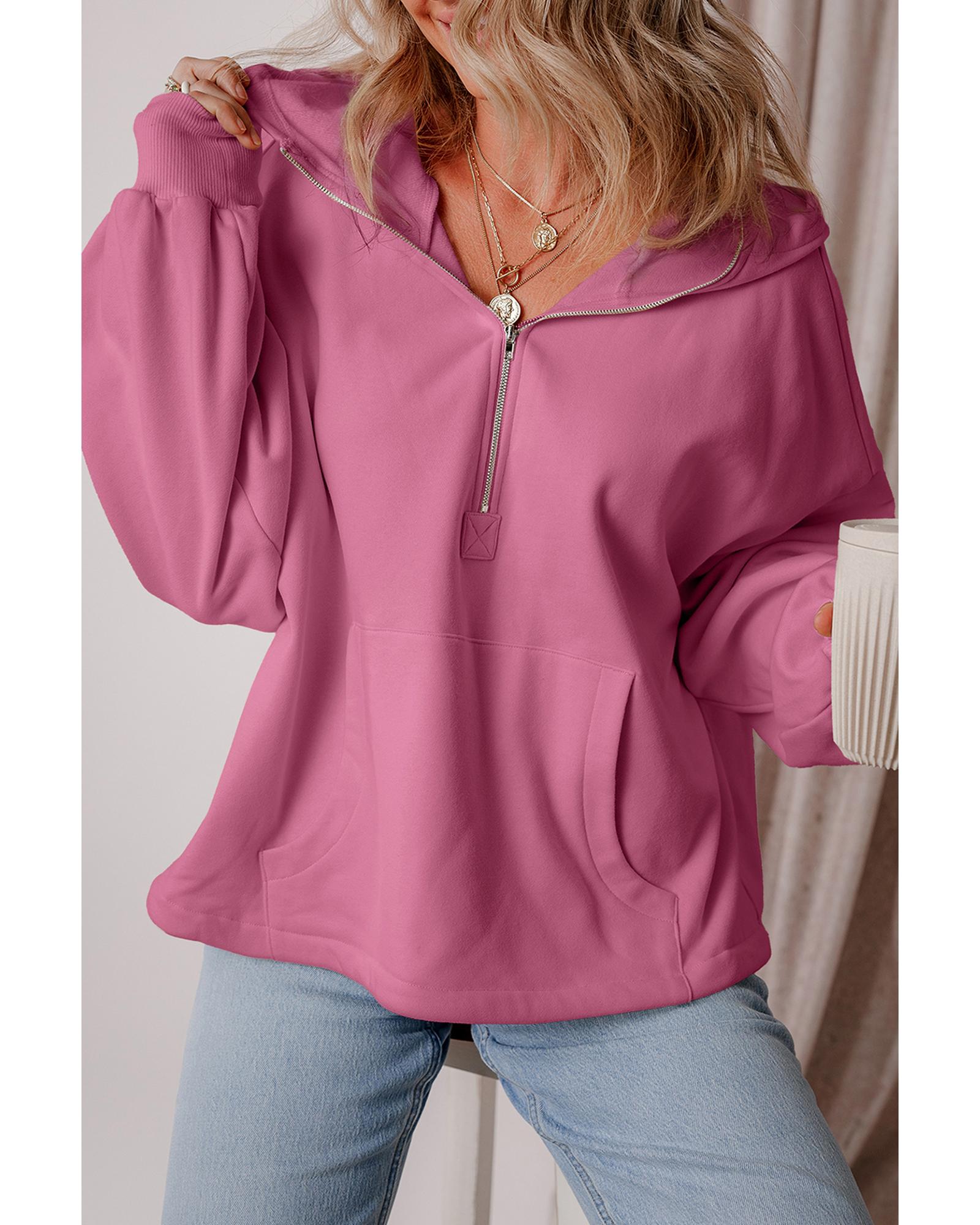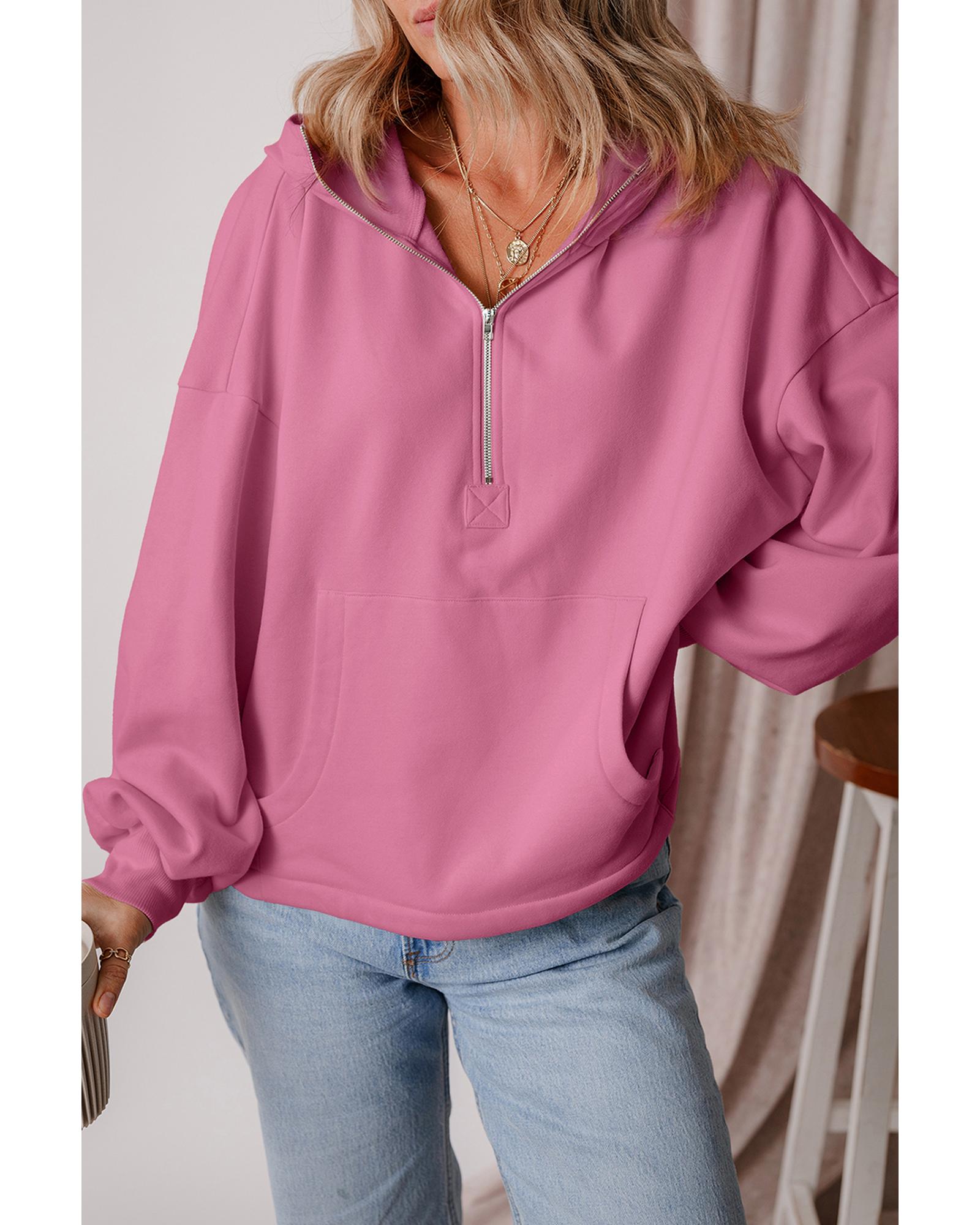 Valerian Fleece Lined Half Zipper Kangaroo Pockets Loose Hoodie – S
