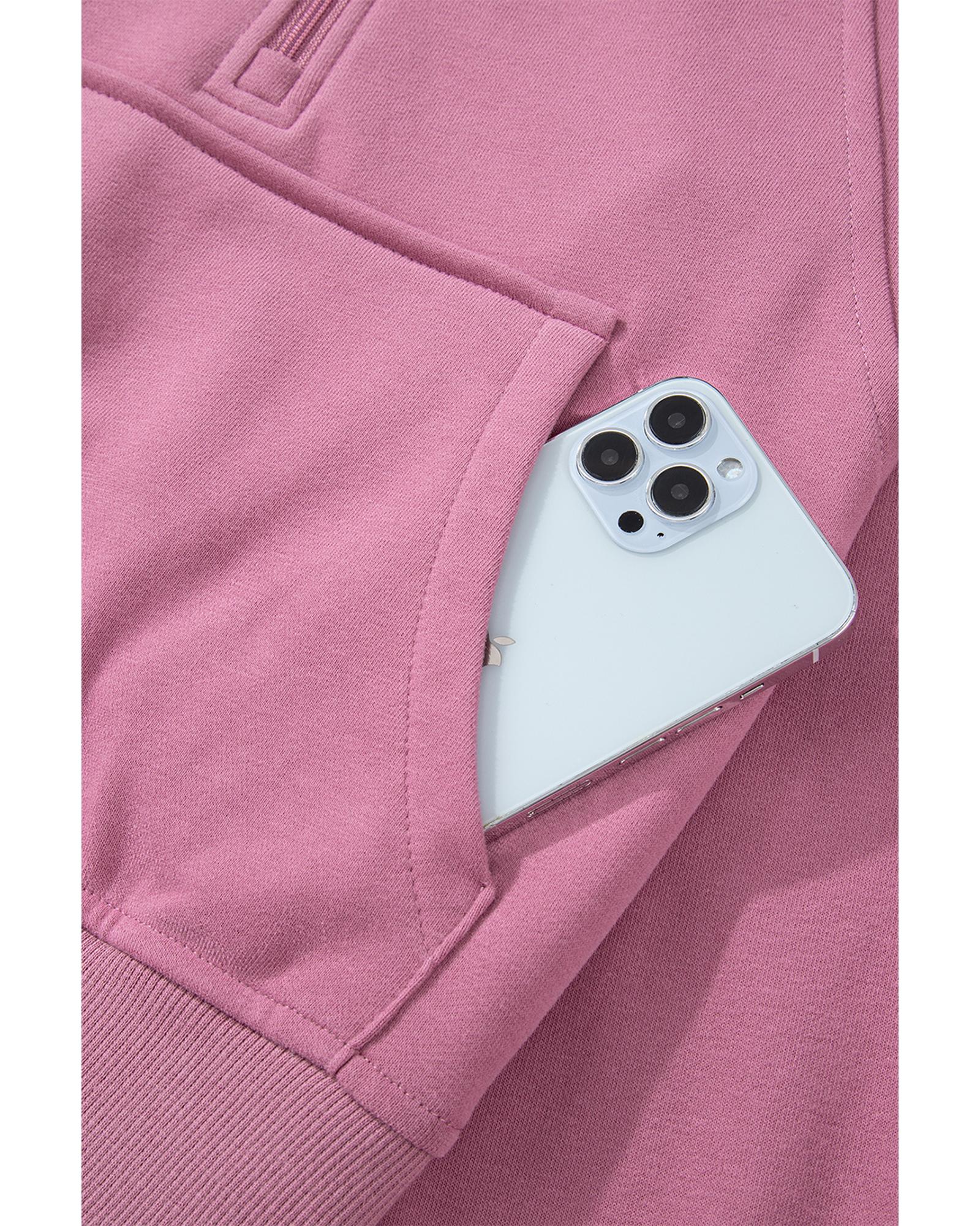 Valerian Quarter Zip Stand Neck Kangaroo Pocket Sweatshirt – S