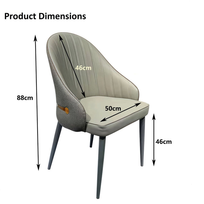 VELLUTO Dining Chairs Set Armchairs Mid Century Modern Kitchen Dining Room Chairs Faux Leather Accent Chairs Metal Vanity Lounge Chair with Back for Living Room Bedrooms Set of 2 (Grey)