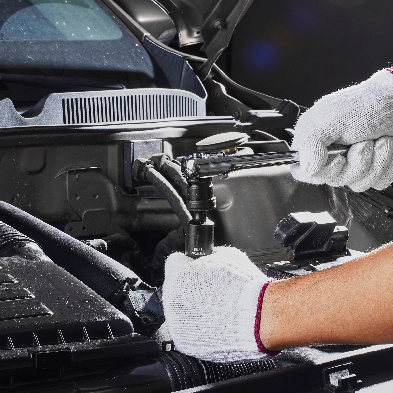 Crafted from premium impact-grade alloy steel, our 3/8″ swivel socket set with Cr-Mo industrial-grade alloy steel offers exceptional enhancements in impact resistance and absorption. Through the utilization of vacuum heat treatment, the steel undergoes rapid heating and cooling processes, resulting in a polished and highly durable surface. This makes it well-suited for a wide range of operational environments.