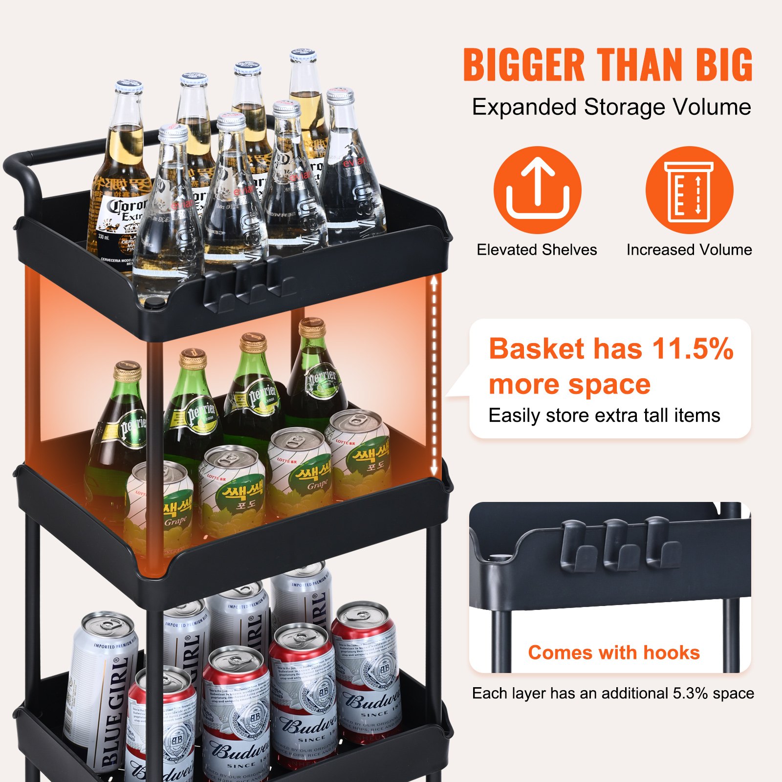 VEVOR 4-Tier Kitchen Rolling Cart Basket Utility Cart on Wheel with Handle Black