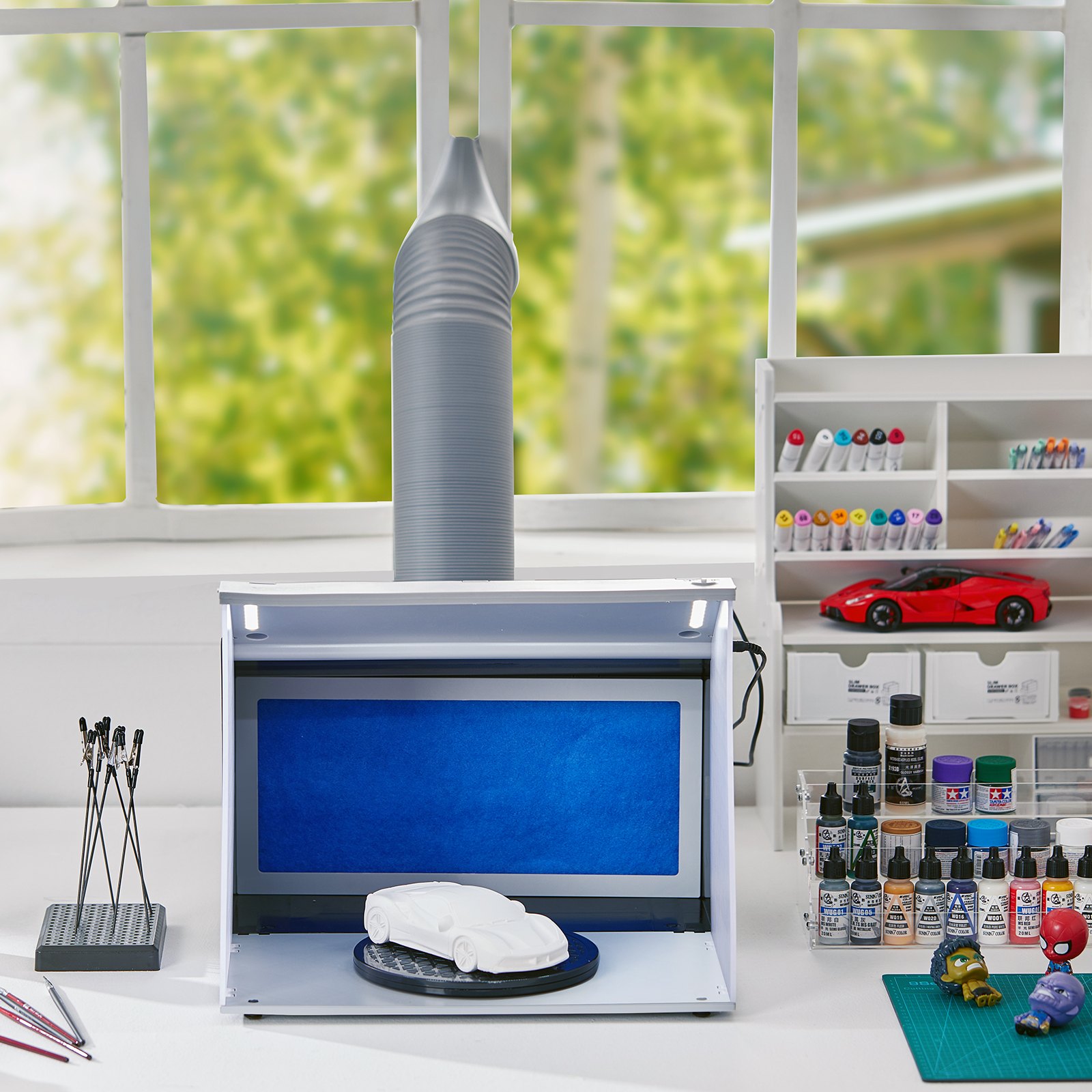 VEVOR Airbrush Spray Booth, Portable Hobby Airbrush Paint Spray Booth Kit with 4 LED Light, Powerful Dual Exhaust Fans, Turntable and 6 ft Extension Hose, for Painting Models, Arts, Crafts, Cakes
