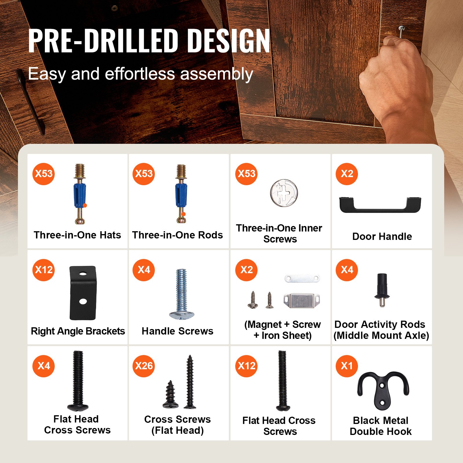 With 3 upper shelves, a wide litter box top and 2 doors, VEVOR 33.5″L x 19.3″W x 58.7″H hidden litter box furniture provides ample room for most of litter boxes, cat food, toys, magazines, photo frames, etc. Suitable for small, medium, or large cats, it ensures a comfortable space for leisure and potty time.