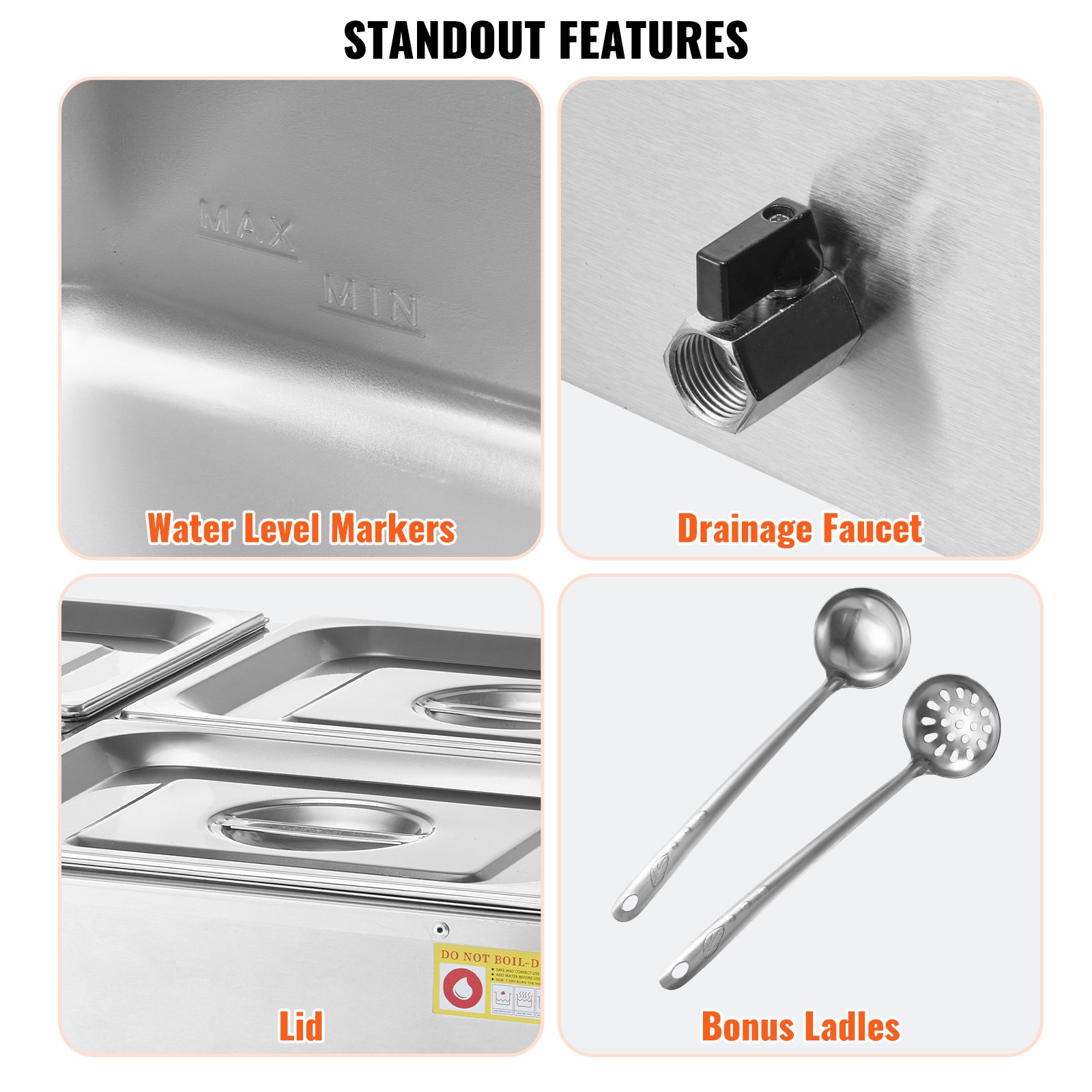VEVOR Commercial Electric Food Warmer Countertop Buffet 4*12 Qt Pan Bain Marie