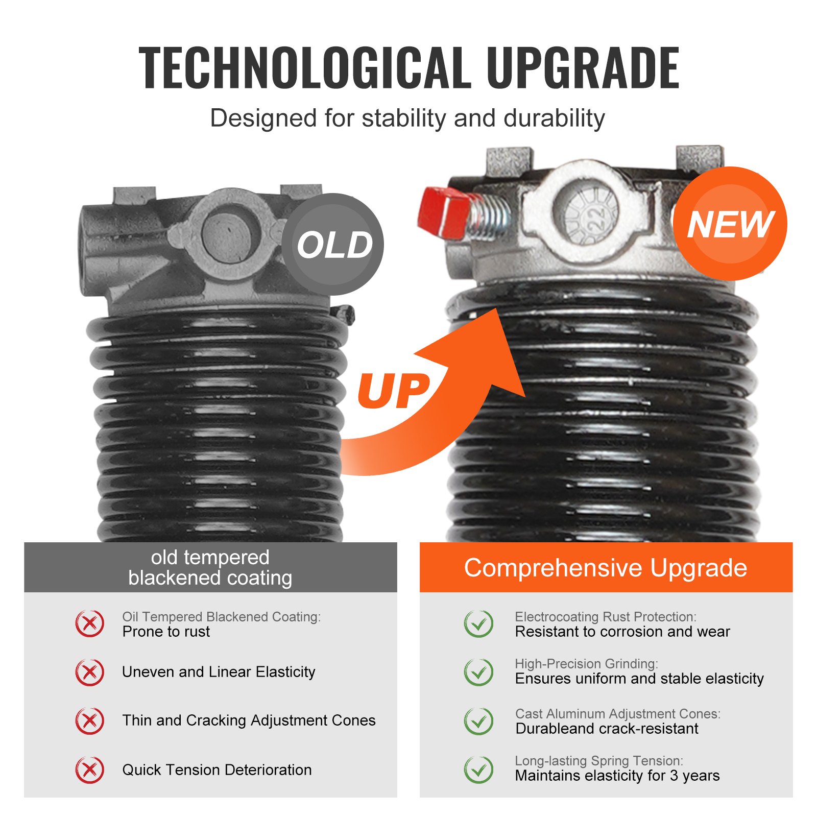 Our garage spring comes with imprinted sizes and left/right labels, accompanied by anti-slip installation bars and gloves. We’ve also included an mounting wrench, so there is no need for extra tools and making the replacement process convenient and hassle-free.