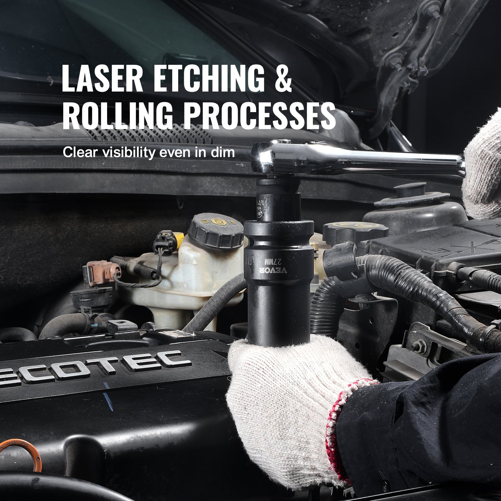 Distinguished by its hexagonal drive design, which sets it apart from traditional designs lacking rounded corners, this socket tool set significantly reduces pressure exerted on fasteners during impact. As a result, it minimizes wear and effectively prevents bolt rounding and stripping.