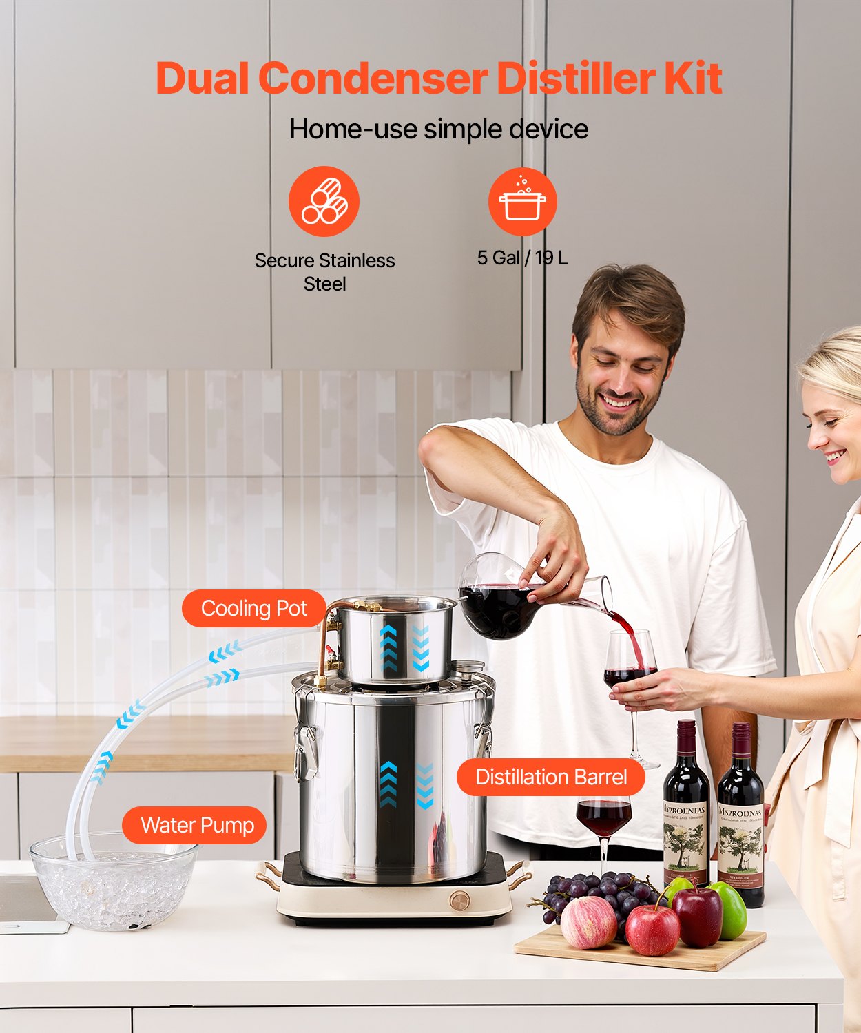 VEVOR Moonshine Still 5 Gal Water Alcohol Distiller Brewing Kit Stainless Steel