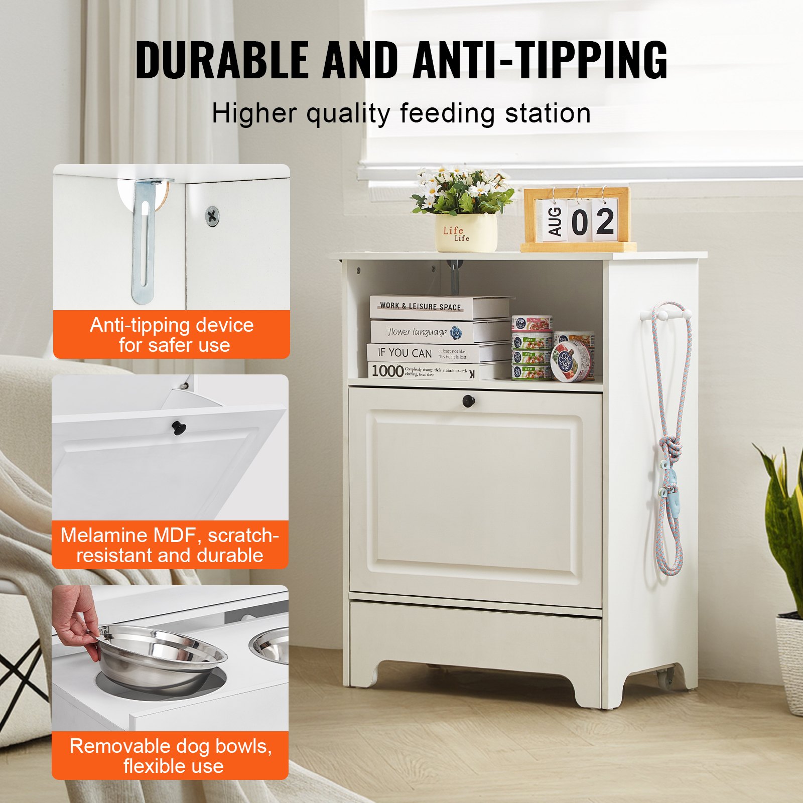 VEVOR Pet Feeding Station w/ 2 Elevated Dog Bowls Dog Food & Toy Storage Cabinet