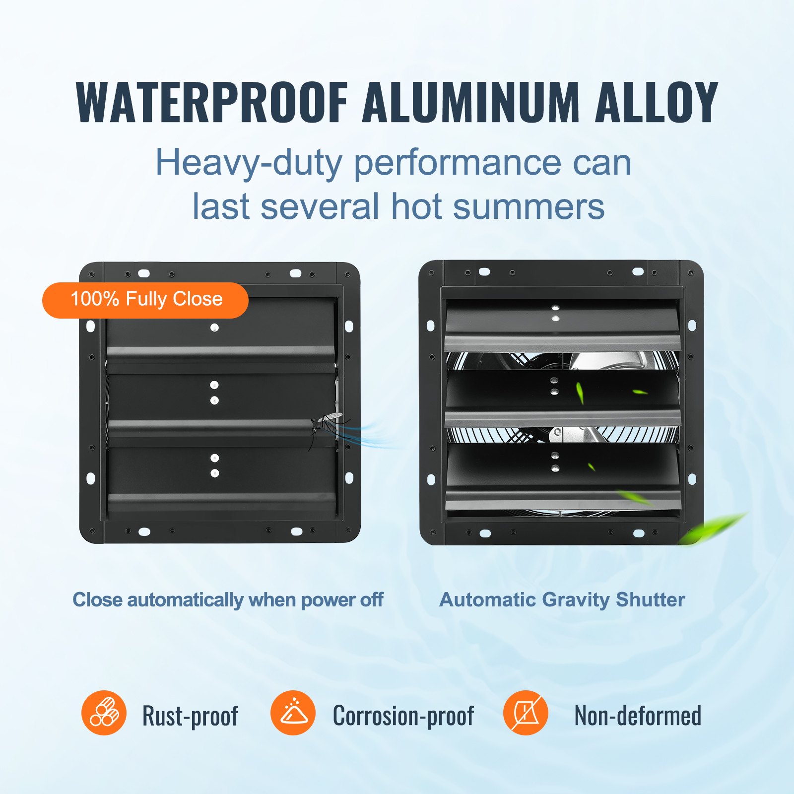VEVOR Shutter Exhaust Fan, 254mm / 10inch with Temperature Humidity Controller, EC-motor, 843 CFM, Variable Speed Adjustable Wall Mount Attic Fan, Ventilation and Cooling for Greenhouses, Garages, Sheds