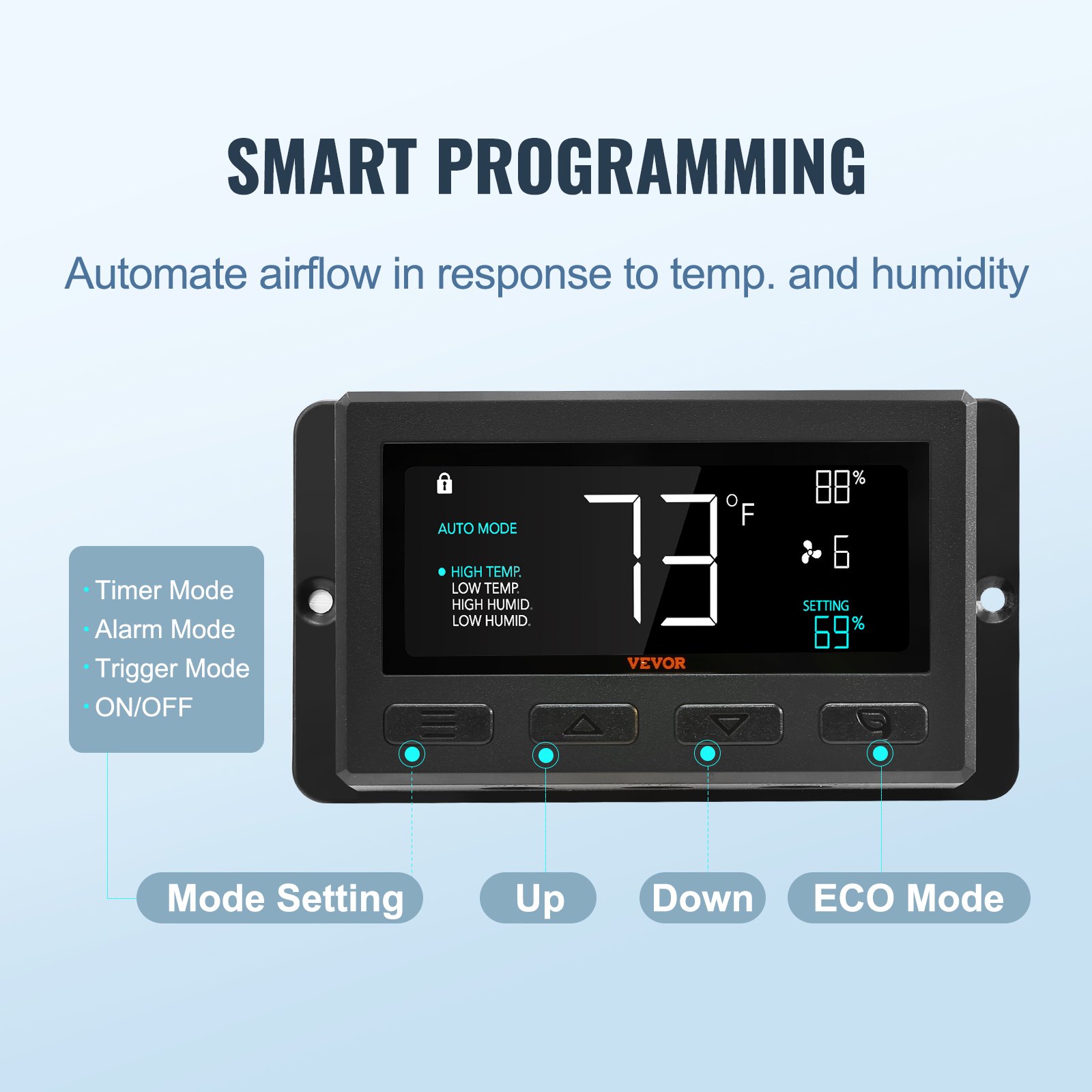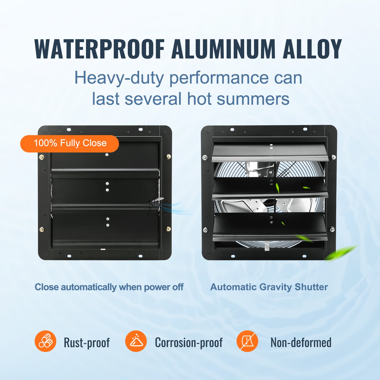 VEVOR Shutter Exhaust Fan, 356 mm / 14inch with Temperature Humidity Controller, EC-motor, 1024 CFM, Variable Speed Adjustable Wall Mount Attic Fan, Ventilation and Cooling for Greenhouses, Garages, Sheds