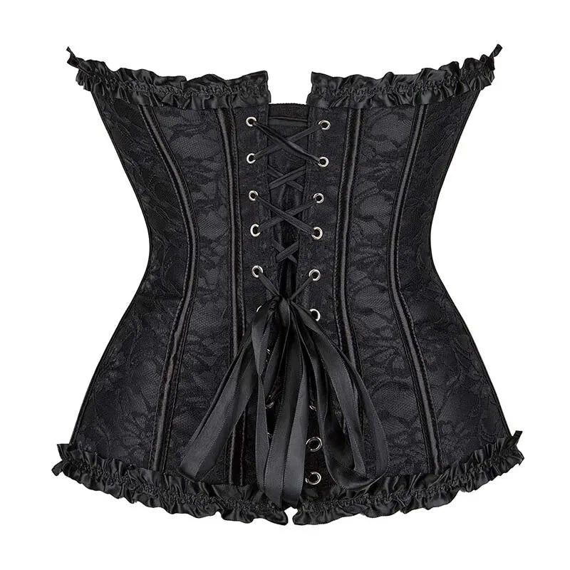 Vintage Lace Overlay Corset With Bowknot Detail Lace Up Bone Pleated Mesh Women – 4Xl