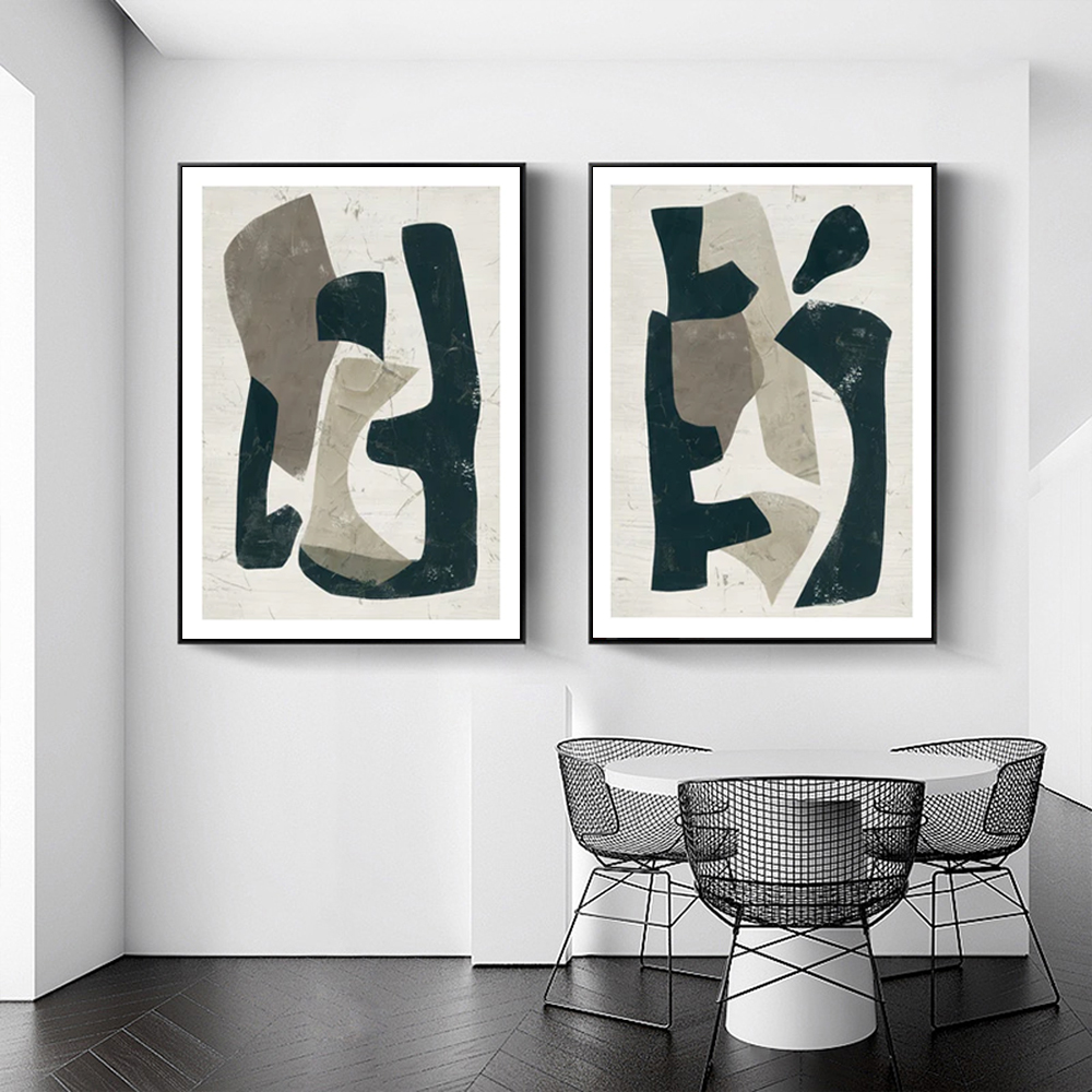Wall Art 50cmx70cm Abstract Puzzle 2 Sets Black Frame Canvas