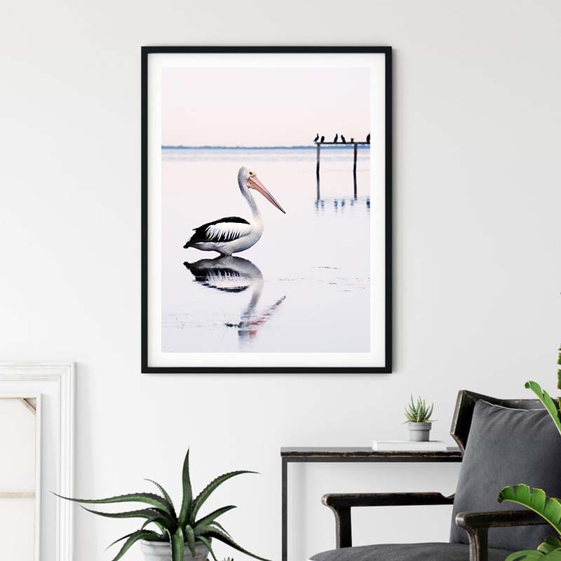 Wall Art 50cmx70cm Pelican Black Frame Canvas