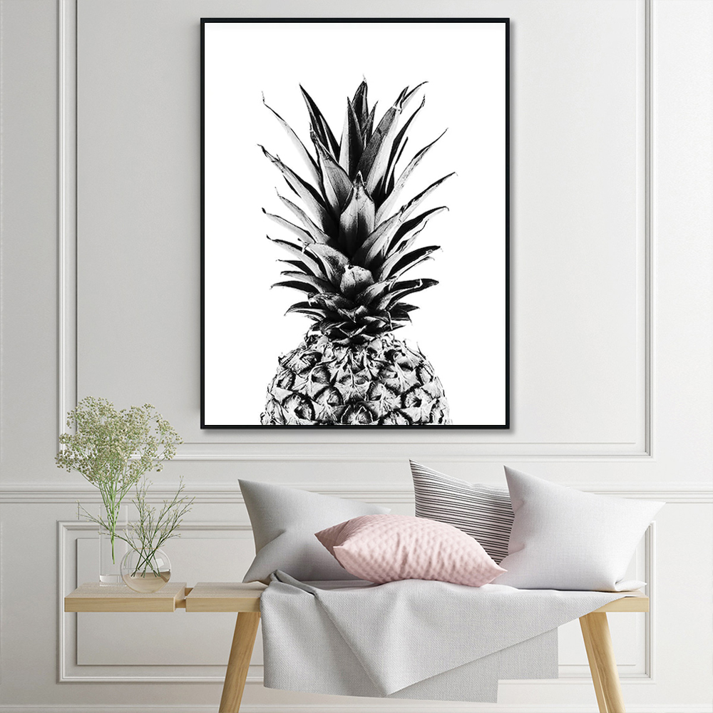 Wall Art 60cmx90cm Pineapple Black Frame Canvas