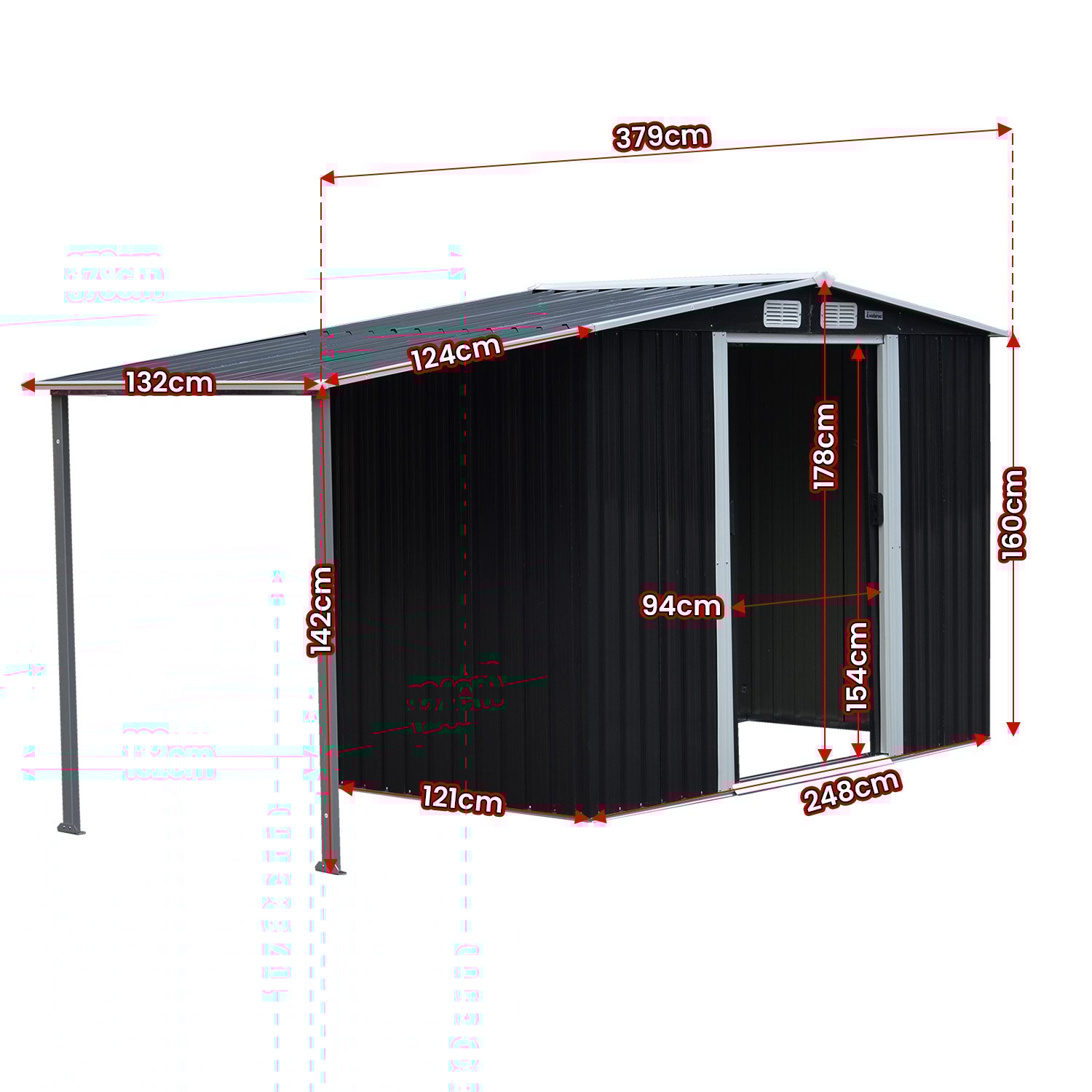 Wallaroo 4x8ft Zinc Steel Garden Shed with Open Storage – Black