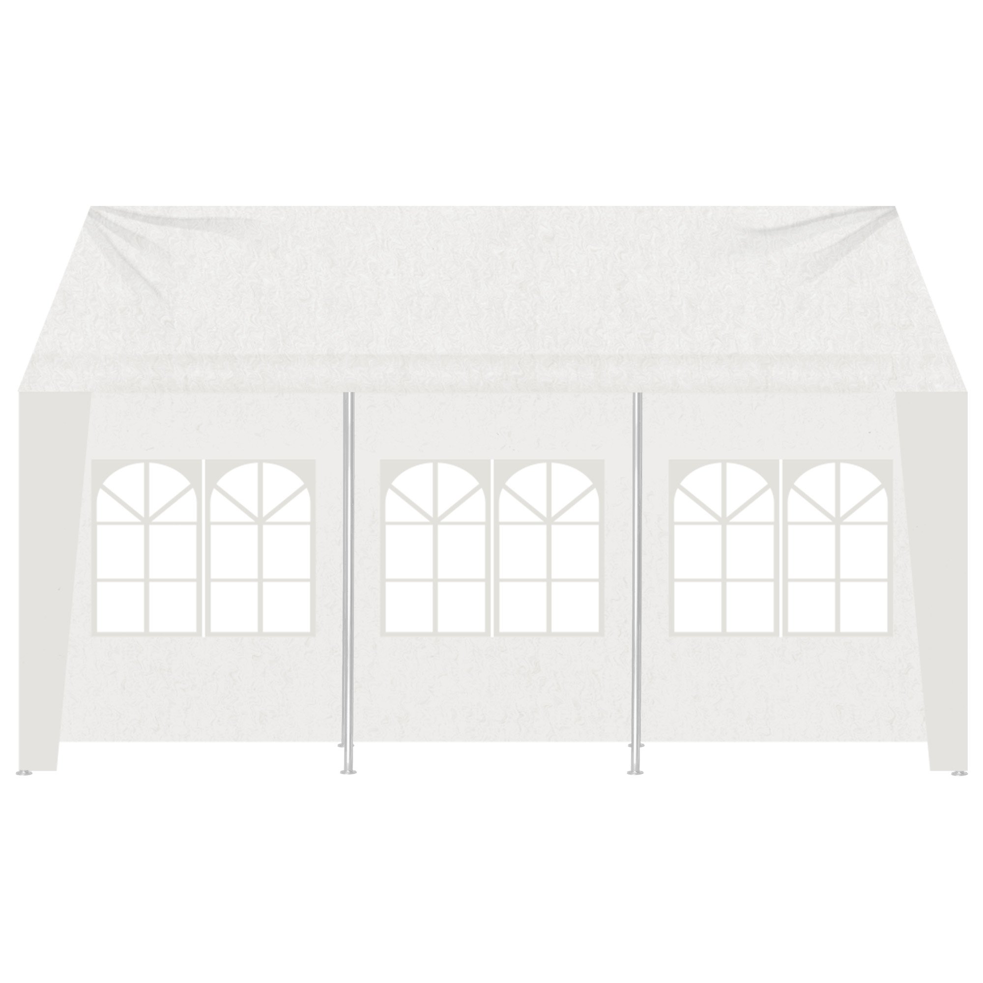 This multi-configuration pavilion suits all occasions. Each side can be quickly fitted or just leave some off for an open design. The end wall has a zip-up door with a 1.8m clearance which you can tie open or leave closed.