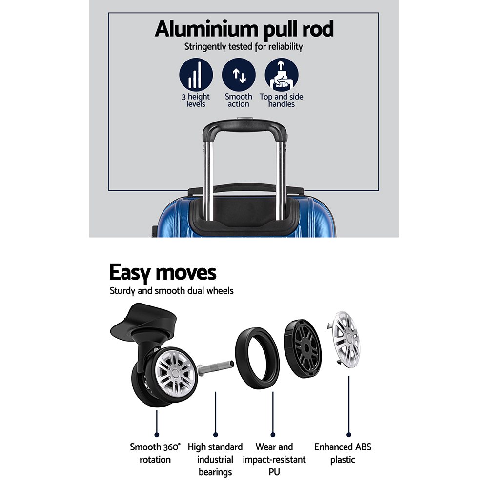 Wanderlite 2 Set Luggage 20-28 Inch with Zipper Lock Carry On Hard Shell Travel Suitcase Luggage Case Blue