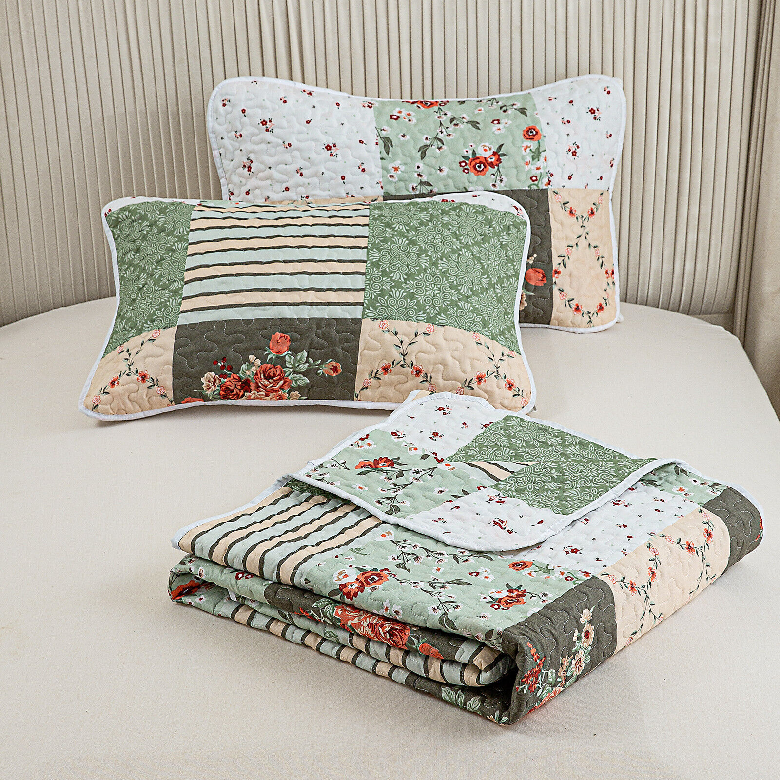 Warm Cozy patchwork greem 3 Pc Bedspread & Pillow Cover Set