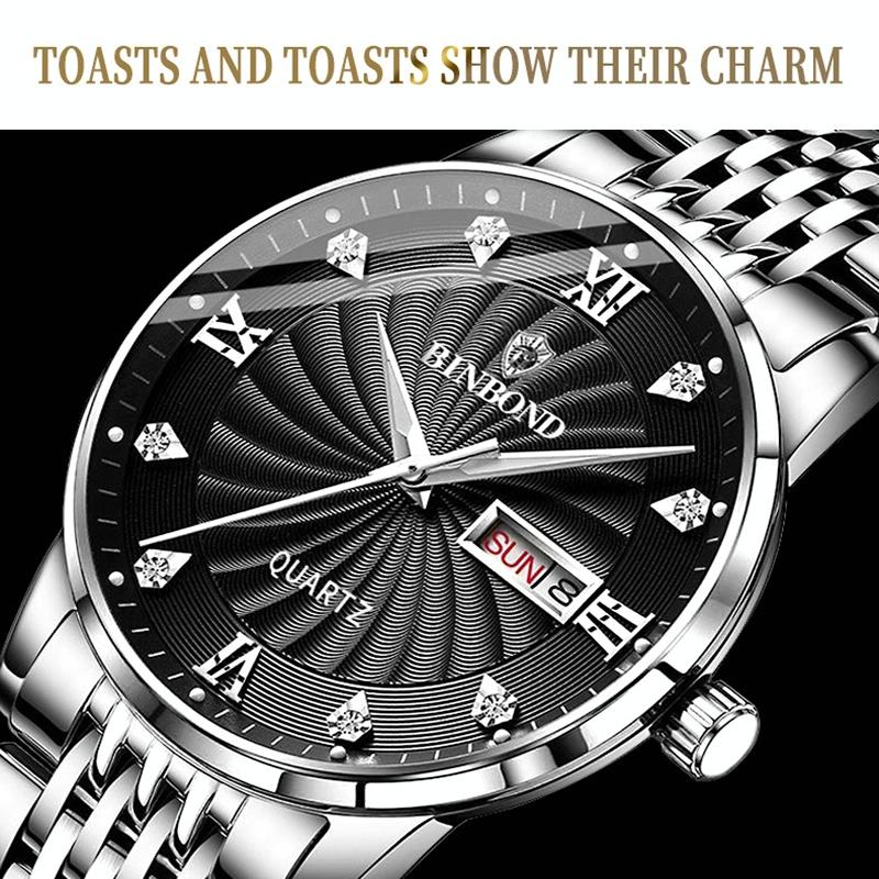 • 1 x B3034 Diamond 30M Waterproof Business Men Butterfly Buckle Luminous Quartz Watch