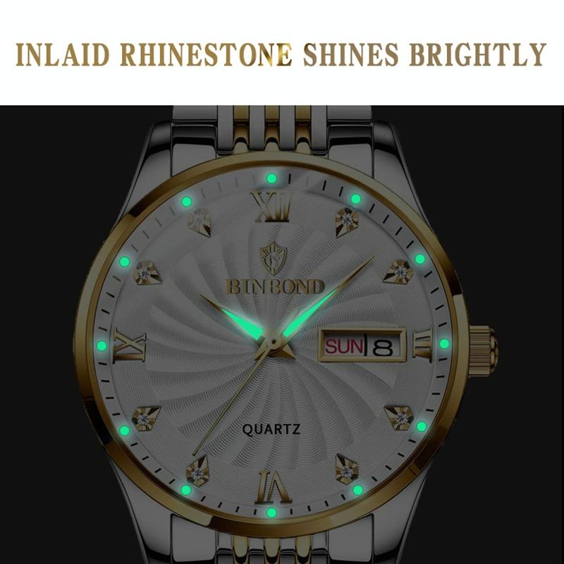 • 1 x B3034 Diamond 30M Waterproof Business Men Butterfly Buckle Luminous Quartz Watch
