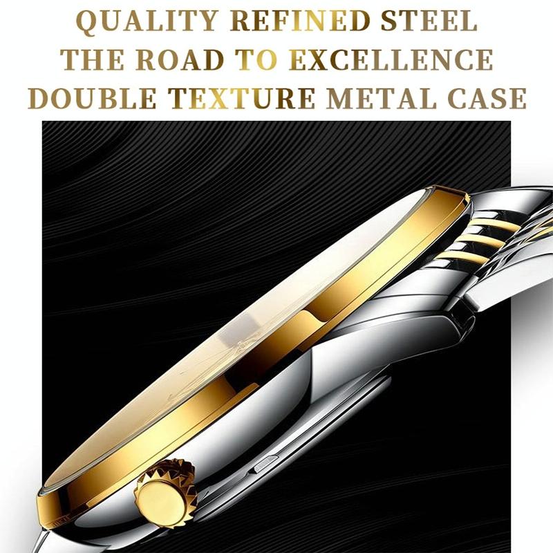 Waterproof Business Men Quartz Watch with Butterfly Buckle and Luminous Dial – 30m – White Steel-Black