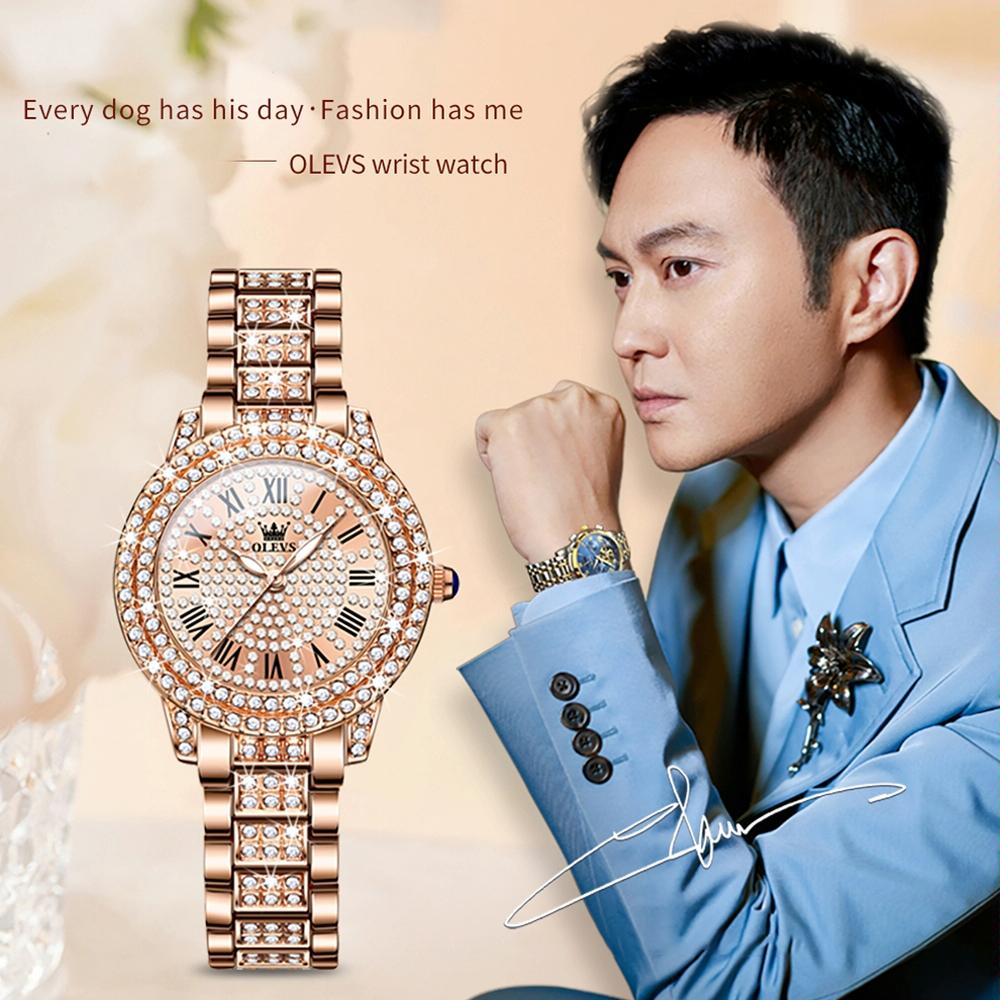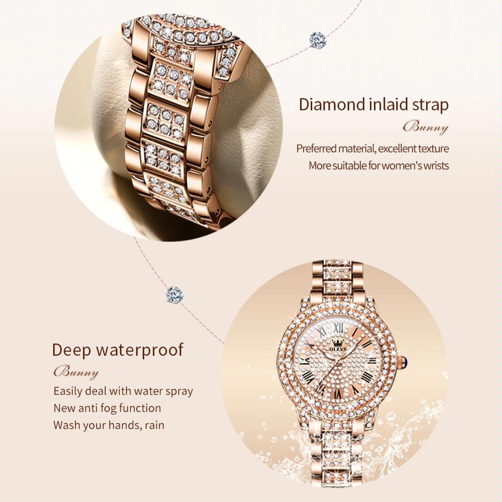 Waterproof Diamond Women Quartz Watch – Rose Gold Roman