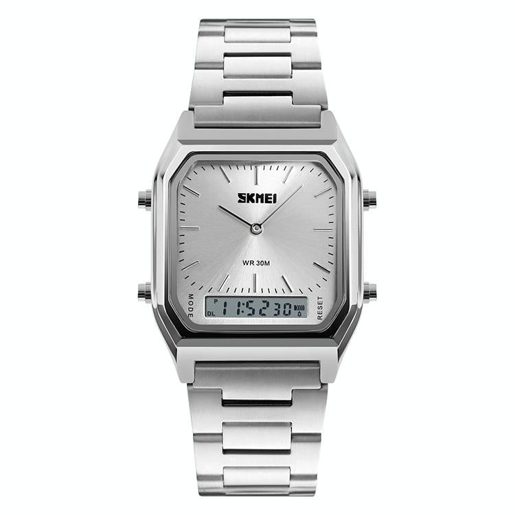 • 1 x 1220 Multifunctional Men Outdoor Business Noctilucent Waterproof Double Display Steel Watchband Wrist Watch