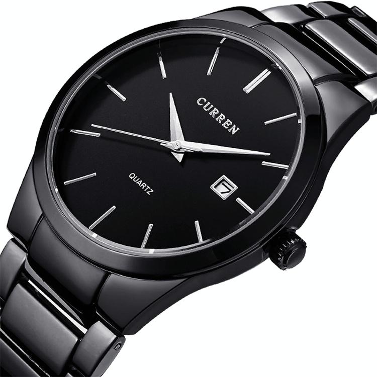 Waterproof Full Steel Quartz Watch – Fashion Business Calendar – White Case Black Face