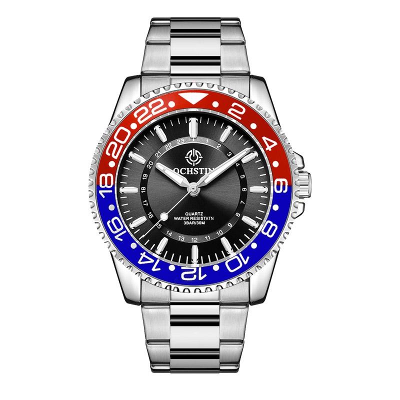 Waterproof Luminous Men Watch with Steel Strap – Multifunctional – Black + Silver