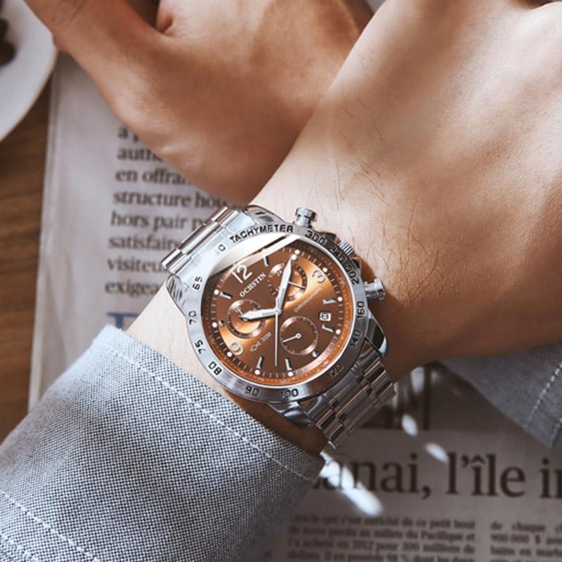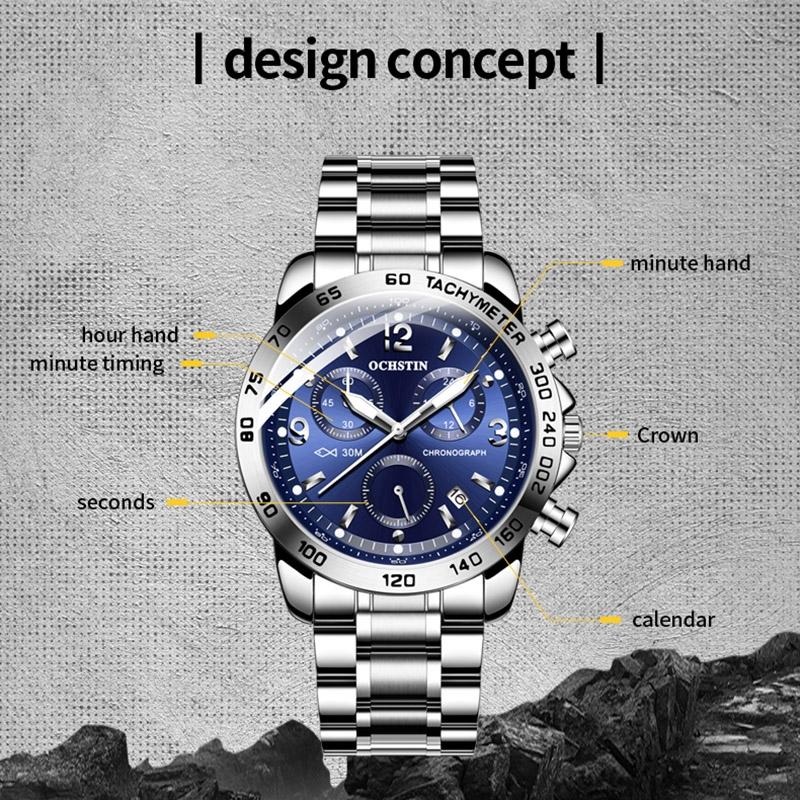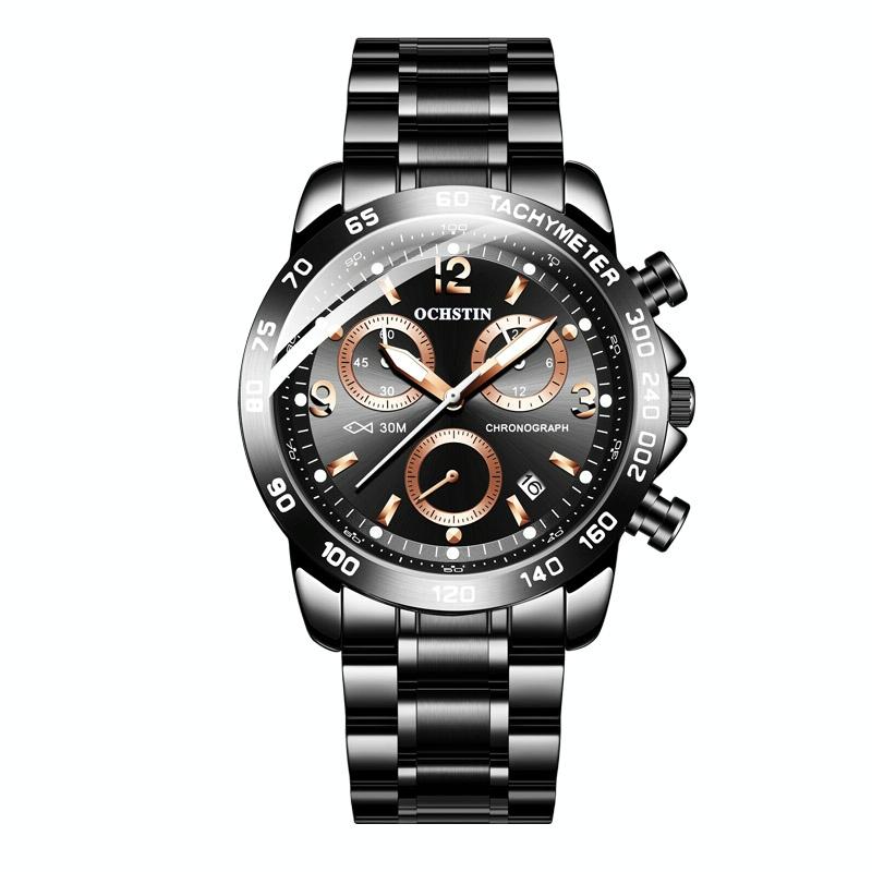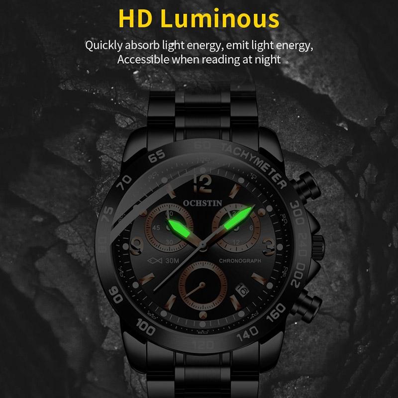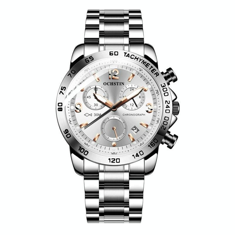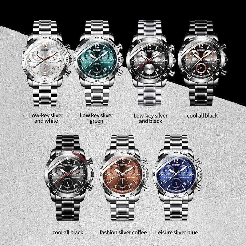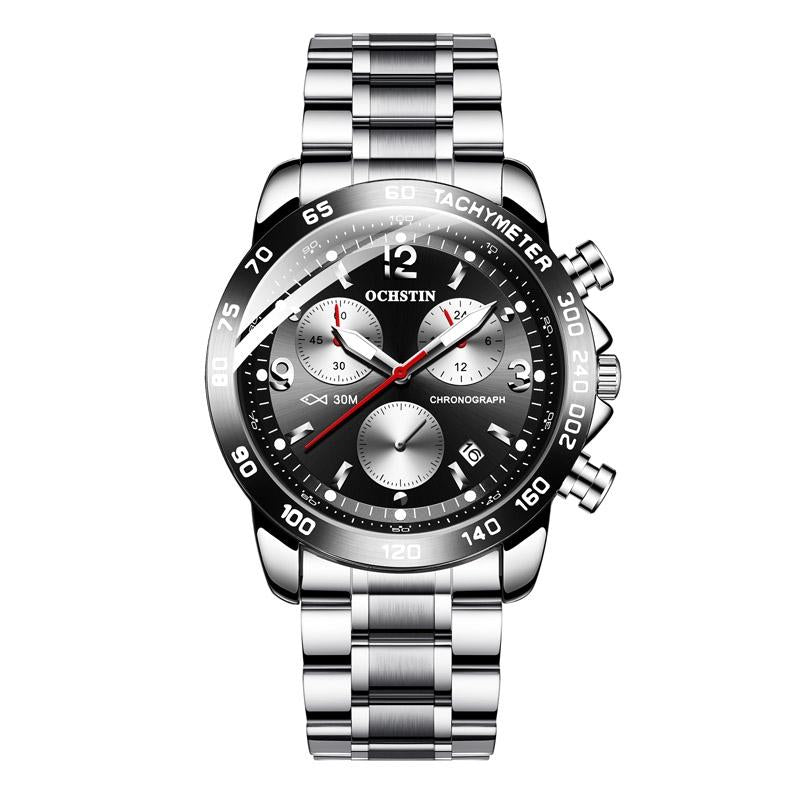 • 1 x 6123B Multifunctional Quartz Waterproof Luminous Steel Strap Men Watch