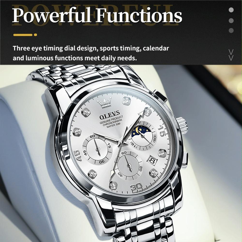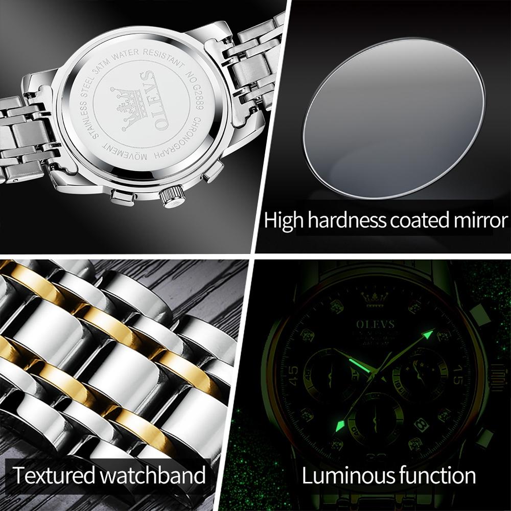 Waterproof Luminous Quartz Watch for Men – Multifunctional – White + Gold