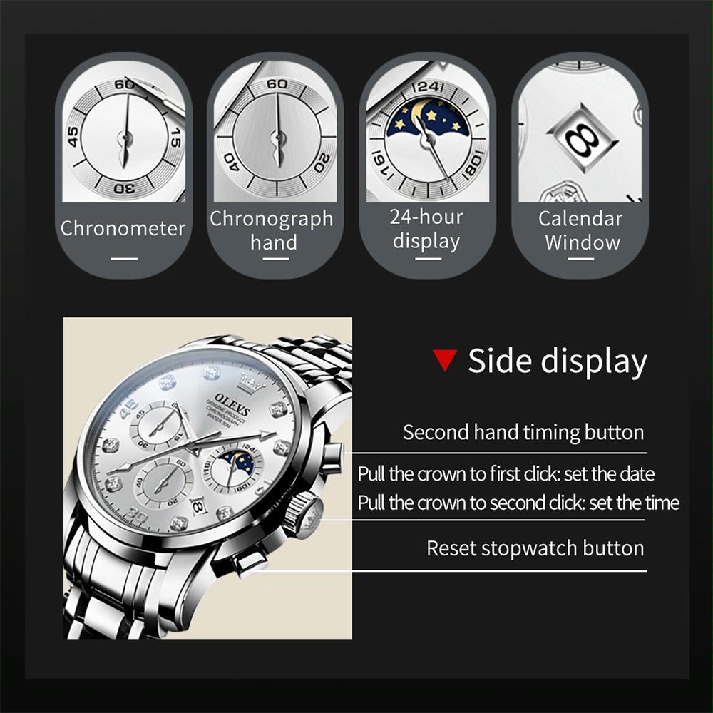 Waterproof Luminous Quartz Watch for Men – Multifunctional – White