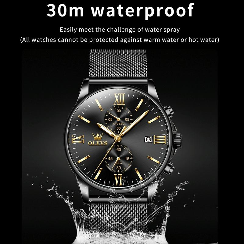 Waterproof Men Chronograph Quartz Watch with Luminous Dial – Black Gold Mesh Strip