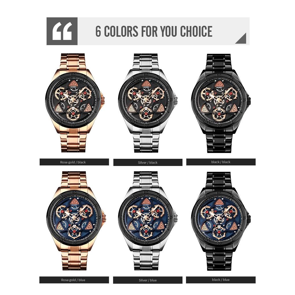 Waterproof Men Quartz Watch with Rotatable Gear Dial – Rose Gold Shell Blue Surface