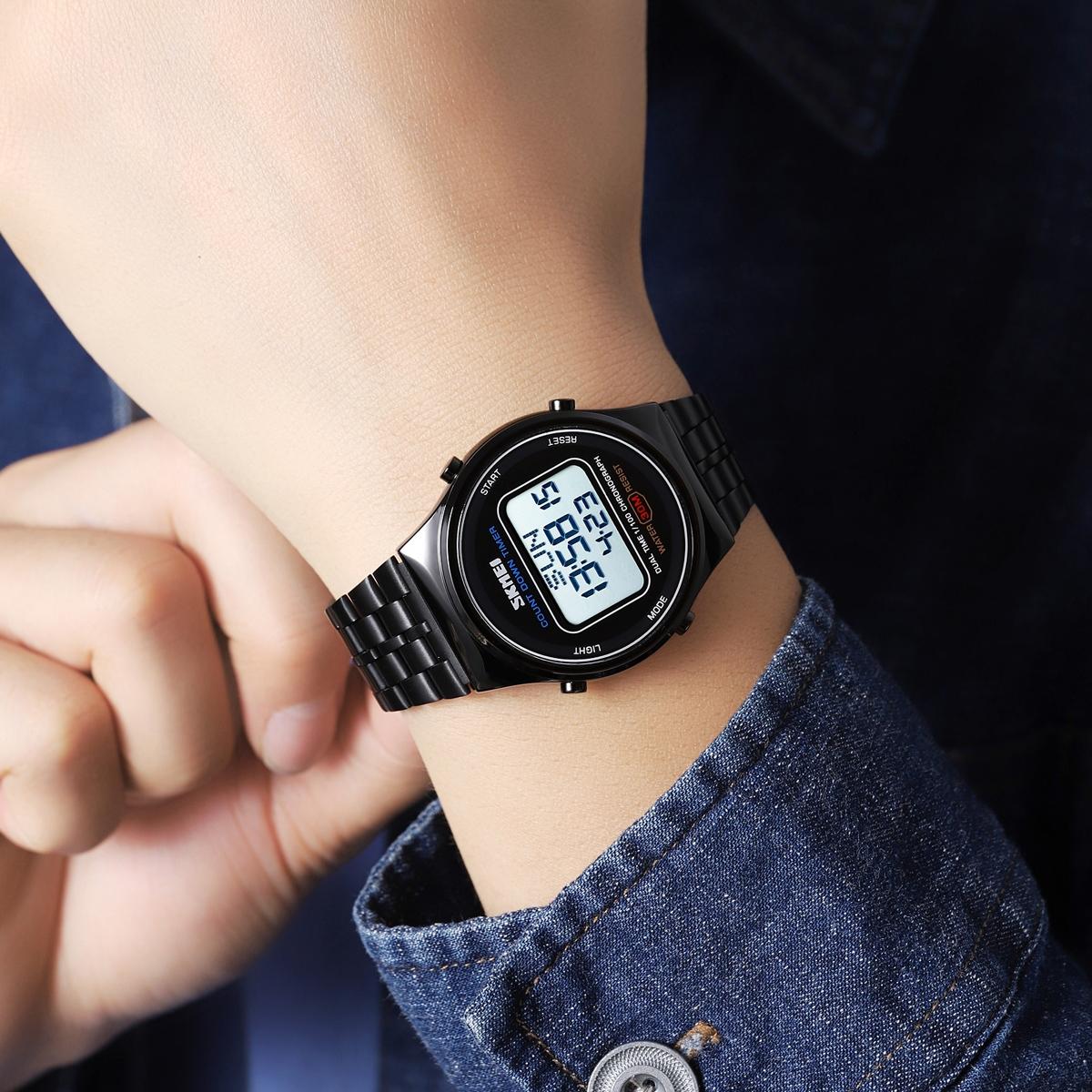 • 1 x 1882 Multifunctional Men 30M Waterproof Luminous Stainless Steel Digital Wrist Watch