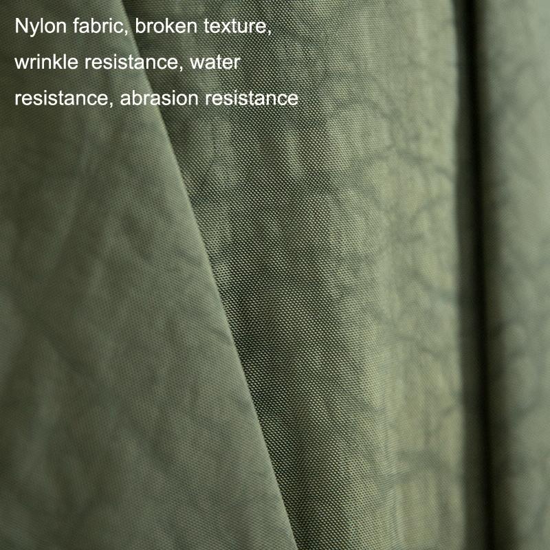• Made of durable nylon fabric with a broken texture for wrinkle, water, and abrasion resistance.