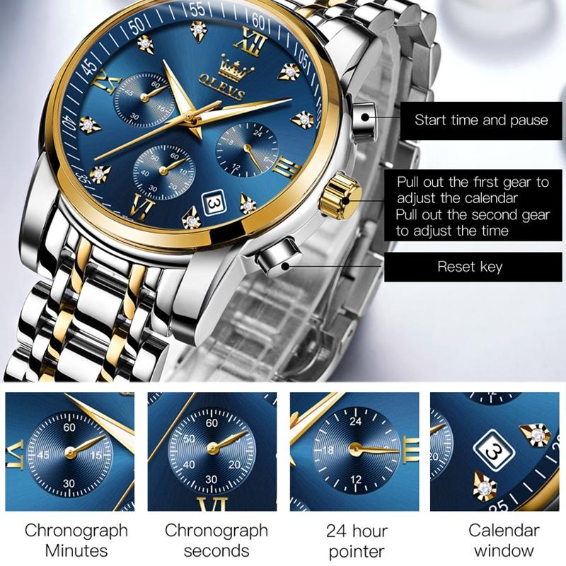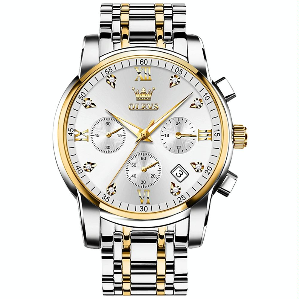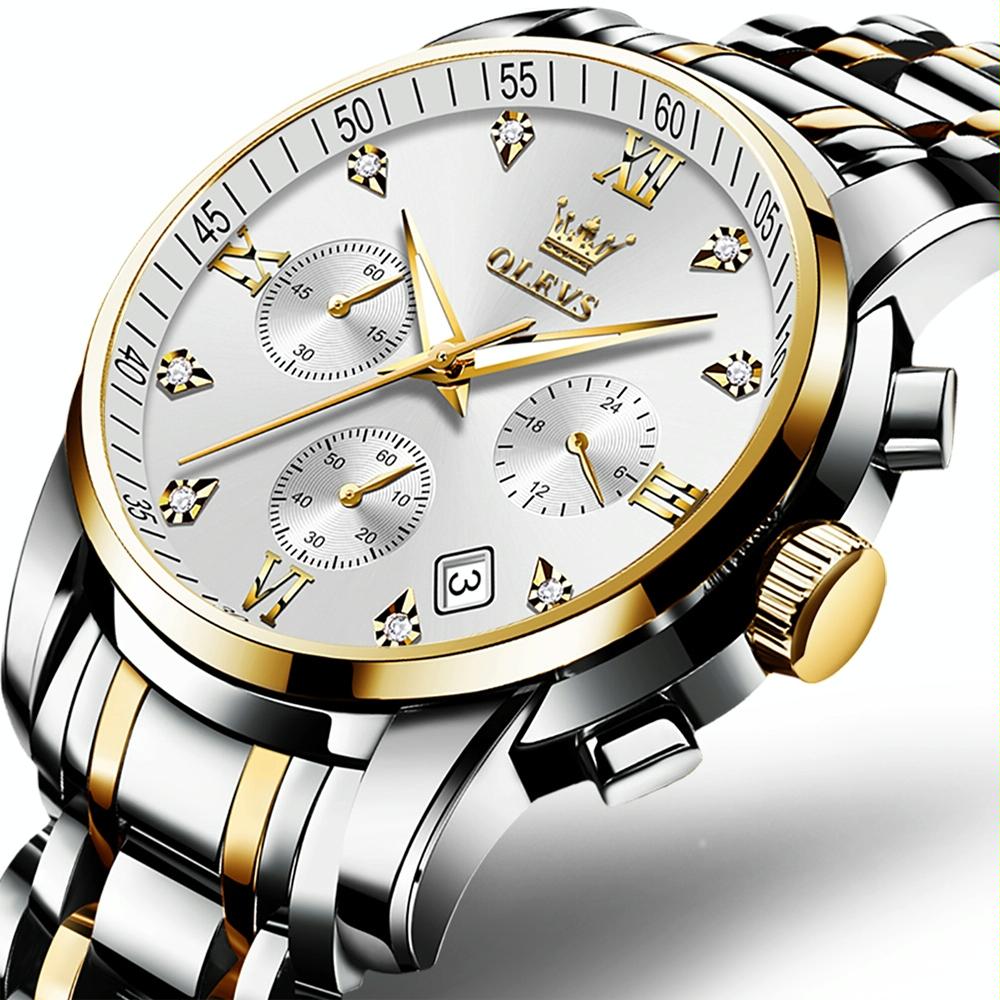 Waterproof Quartz Watch for Men – Multifunctional Business Design – White + Gold