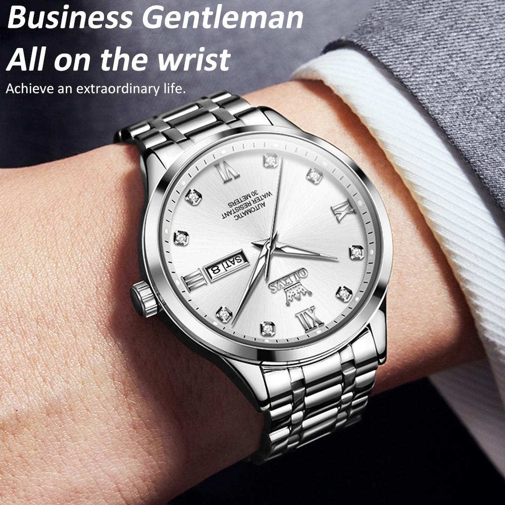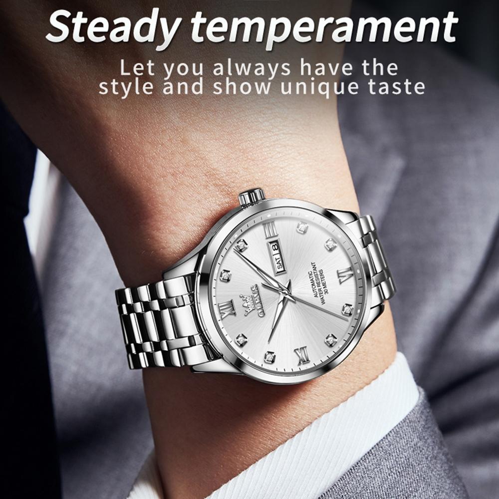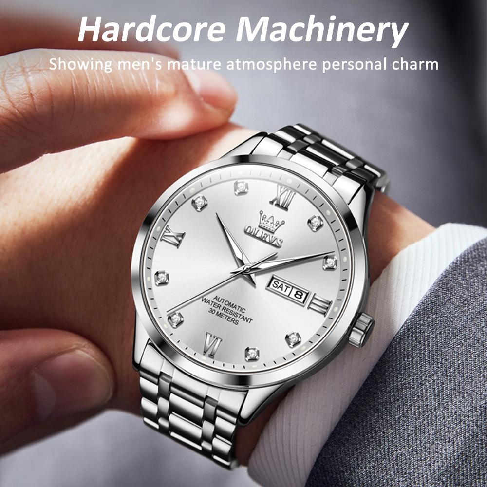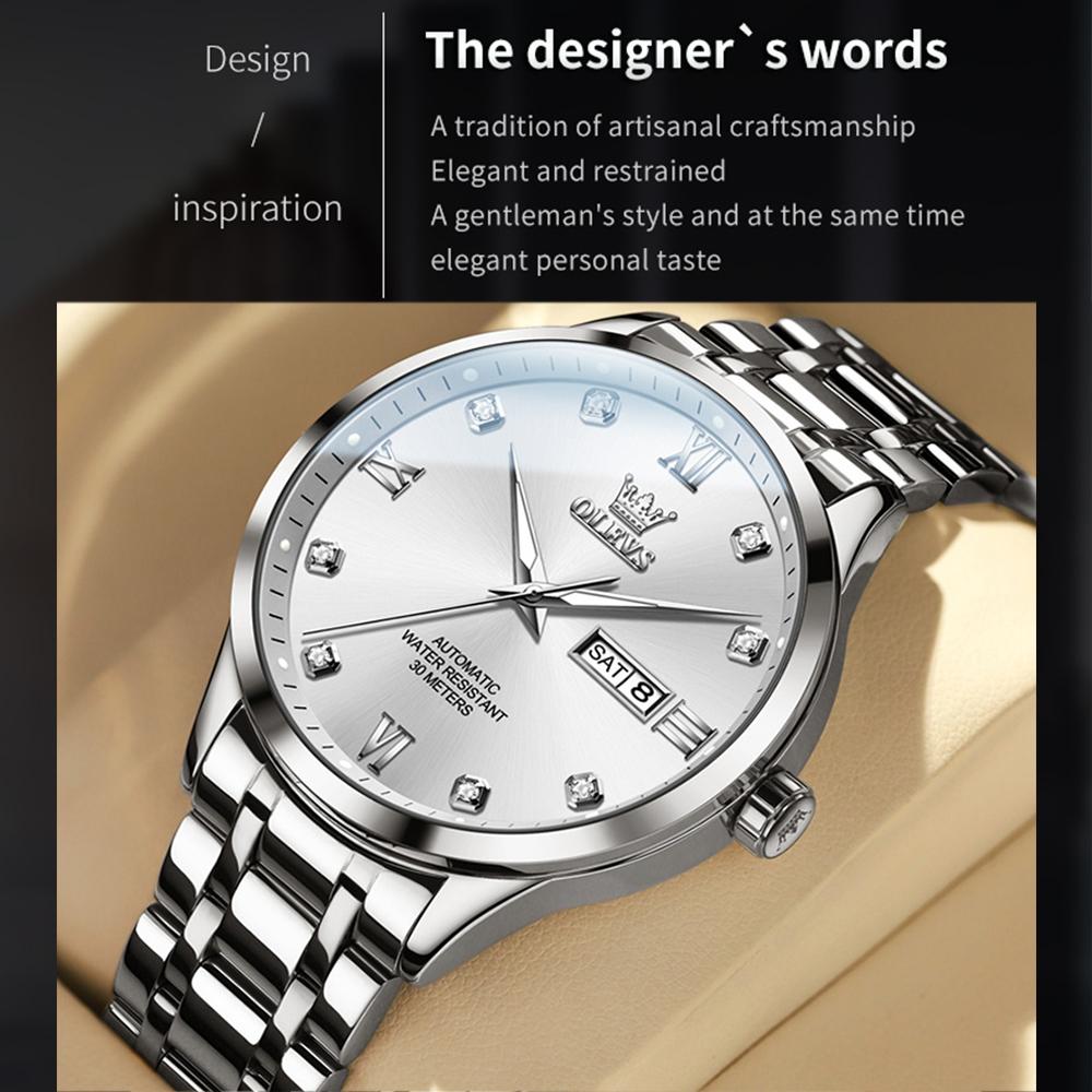Waterproof Quartz Watch with Diamond Roman Scale for Men – Black + Silver