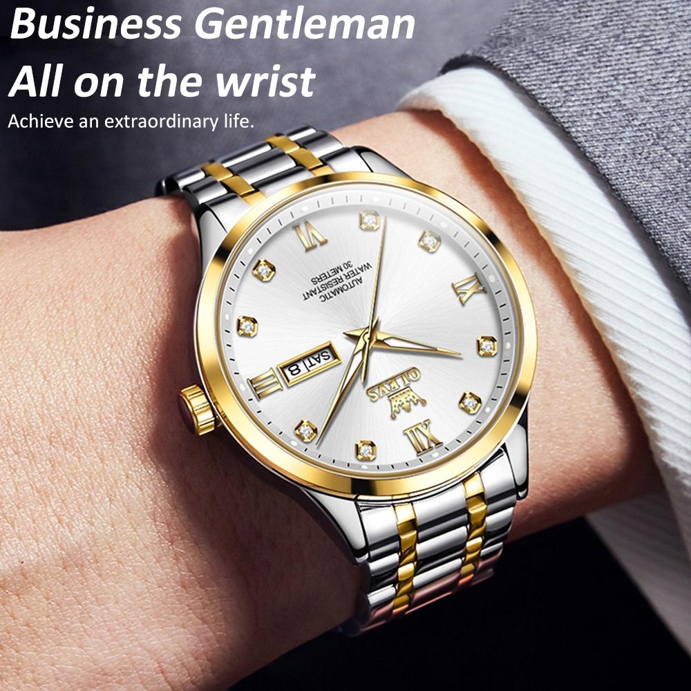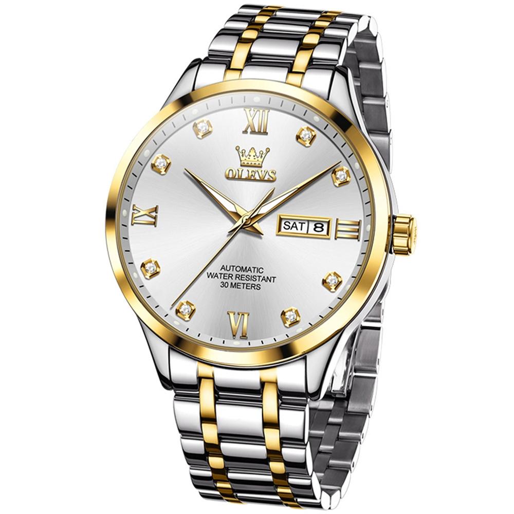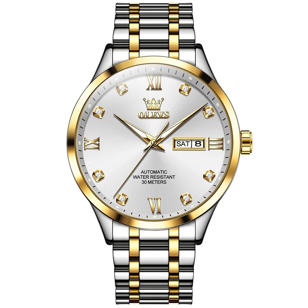 Waterproof Quartz Watch with Diamond Roman Scale for Men – Blue + Gold