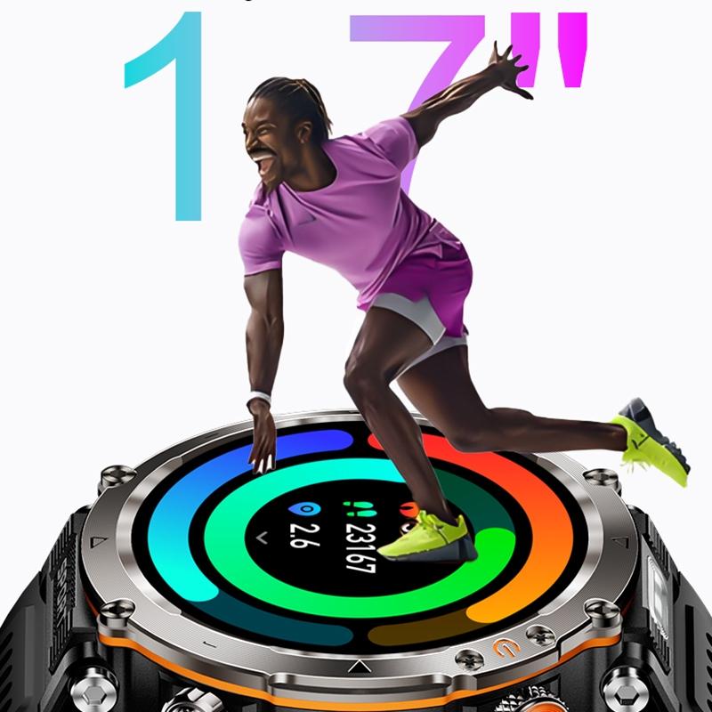 Waterproof Smart Watch With Flashlight And Compass – 1 Inch – Black