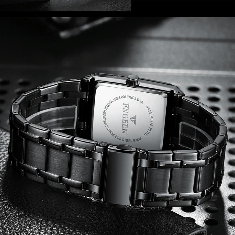 Waterproof Square Men Watch with Calendar – 50m – Full Gold Black Surface
