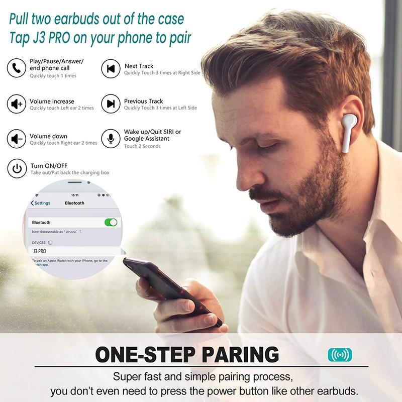 • 1 x J3 Pro Tws Hifi Wireless Bluetooth 5.2 Led Display Waterproof Sports Gaming Earphone Noise Earbuds