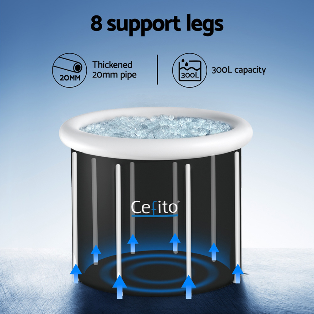 The Ice Bathtub is the perfect solution for your post-workout recovery needs. With its large size and 300L capacity, this tub provides ample space for a refreshing and rejuvenating ice bath experience. Designed with three layers of insulation, our Ice Bathtub ensures that ice stays cold for longer periods. The tub is supported by 6 sturdy legs, providing stability and durability. Equipped with a convenient drain tap and hose, you can easily empty the tub after use. The air nozzle allows for quick inflation, and the bottom drain hole ensures effortless drainage. For added convenience, our Ice Bathtub comes with a protective cover to keep it clean and protected when not in use. The bonus repair kit ensures that you can easily fix any minor damage that may occur. Versatile and suitable for both indoor and outdoor use, the Ice Bathtub is a must-have for athletes, fitness enthusiasts, and anyone looking to recover and relax in the comfort of their own home.