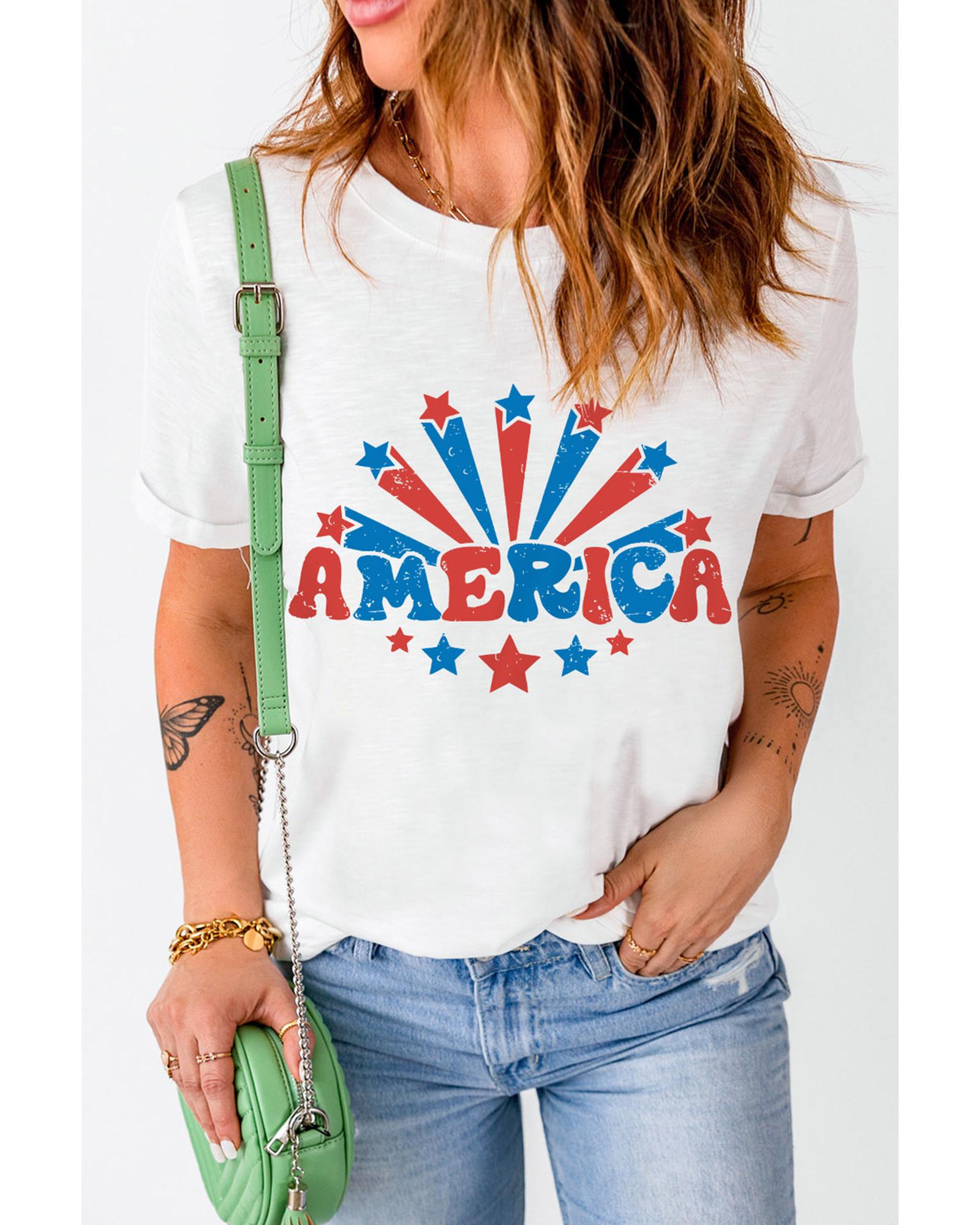 White AMERICA Star Graphic Round Neck Tee Short sleeve design AMERICA Stars graphic print Made from high