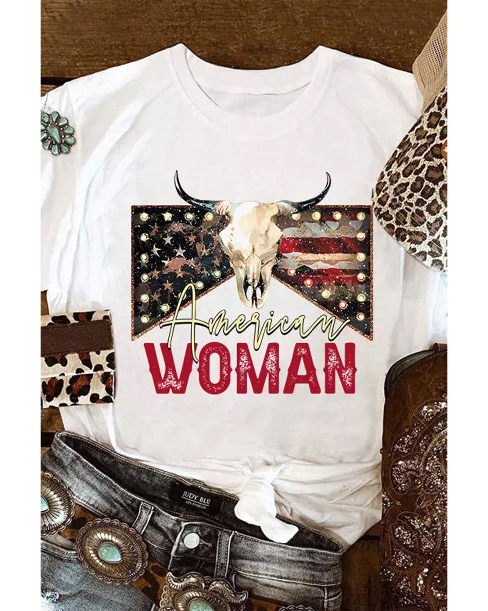 White American Woman Bull Skull Graphic T Shirt – 2XL
